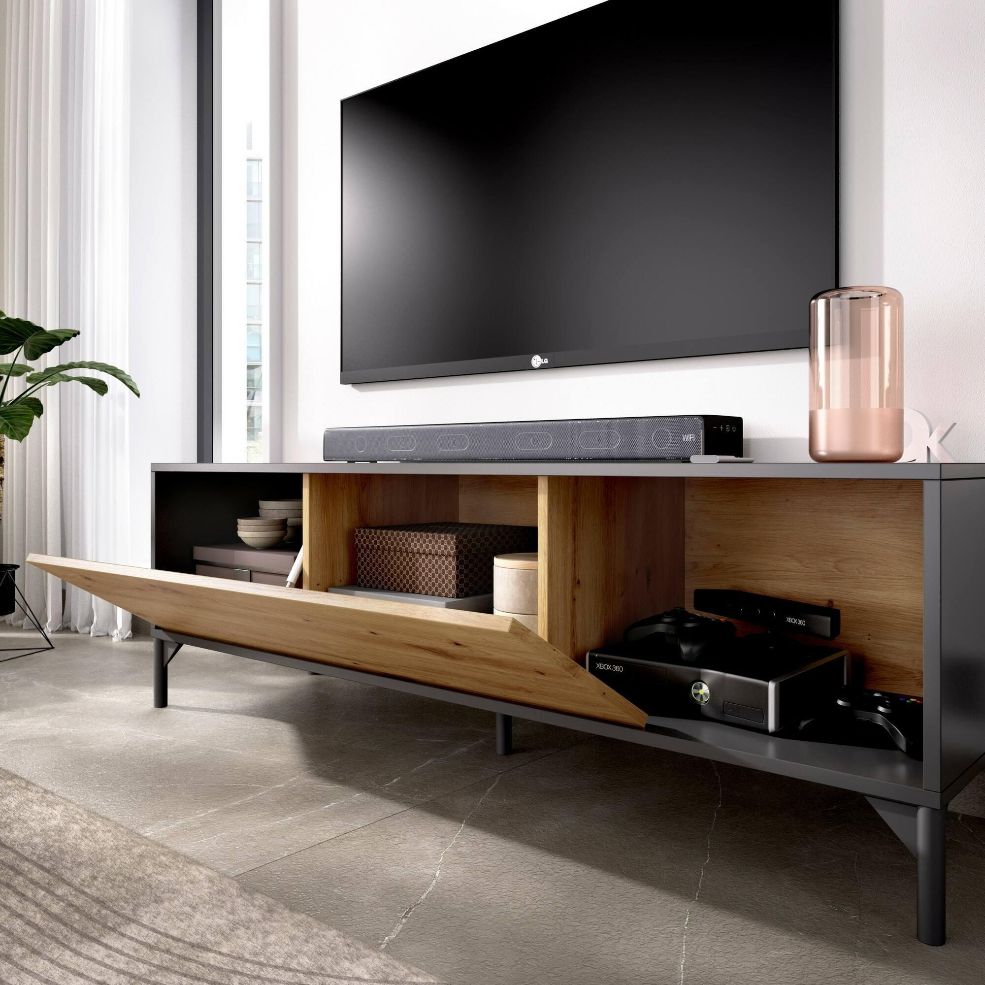 Meuble TV Dlell, Buffet bas de salon, Buffet de salon pour télévision, 132x39h44 cm, Chêne Nodi et Anthracite