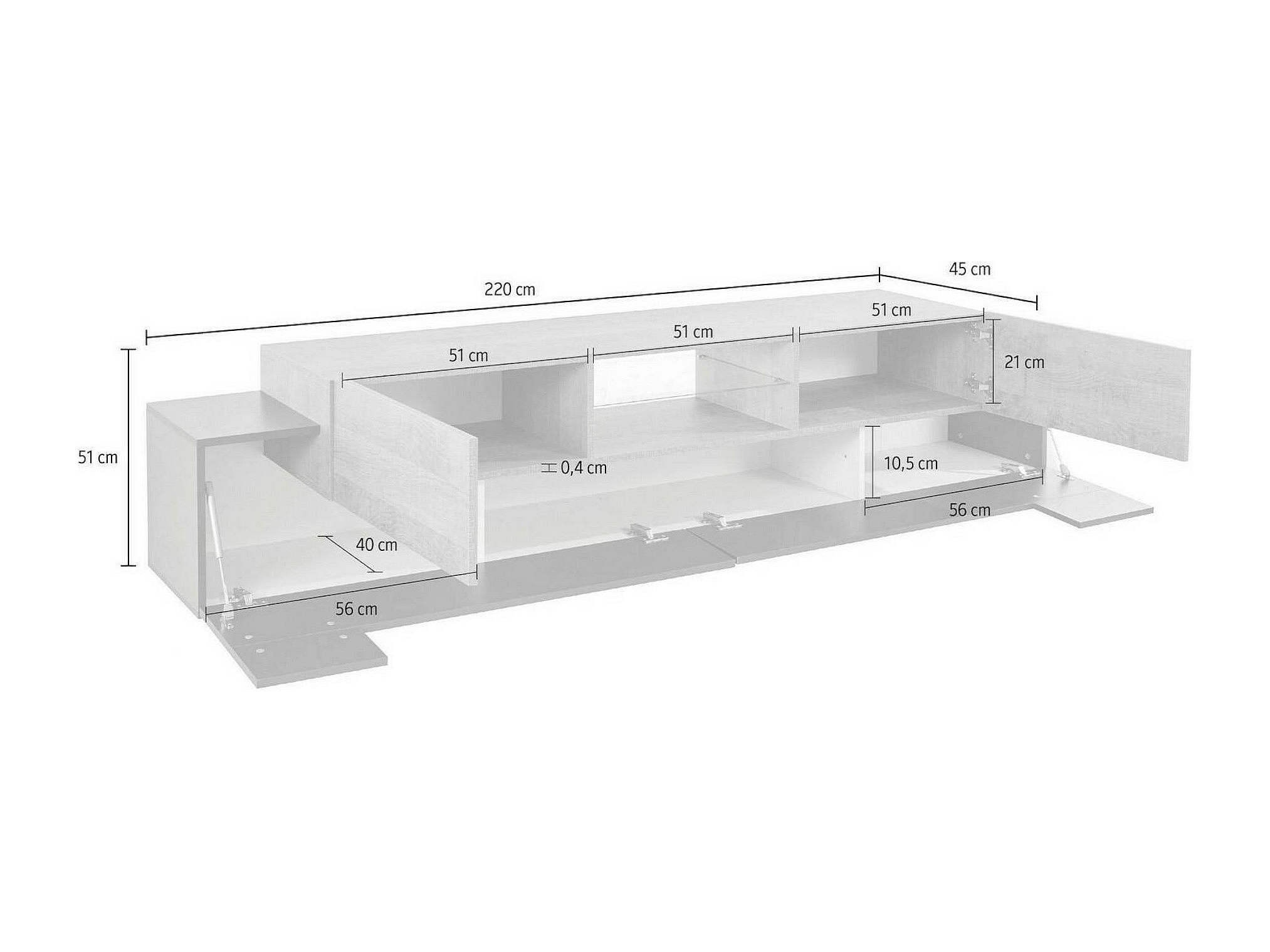 Meuble TV Dmusso, Buffet bas de salon, Base pour meuble TV, 100% Made in Italy, 220x40h51 cm, Anthracite et Érable