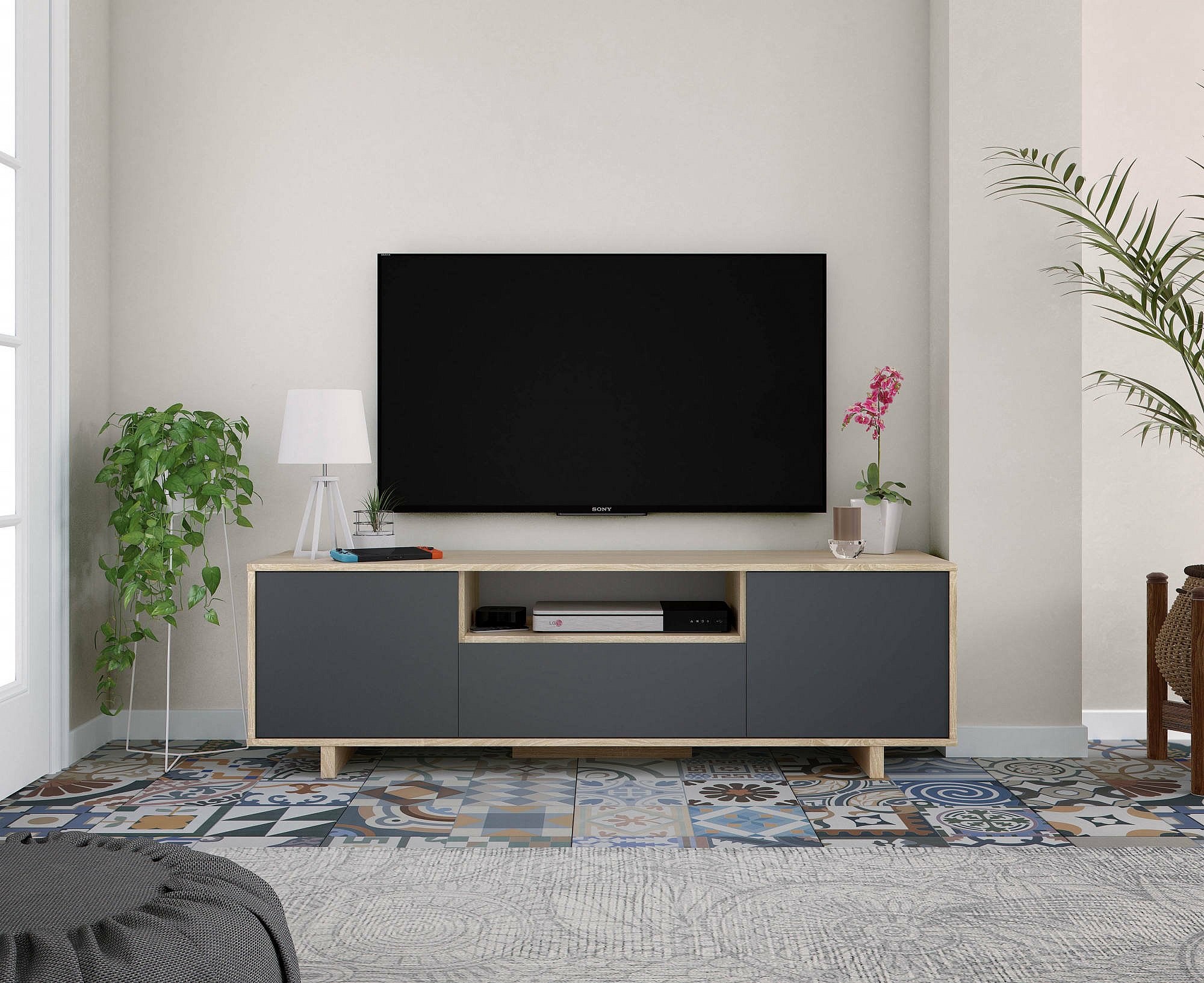 Meuble TV Dnard, Buffet pour télévision de salon, Meuble TV 3 portes, Buffet bas, 150x41h46 cm, Chêne