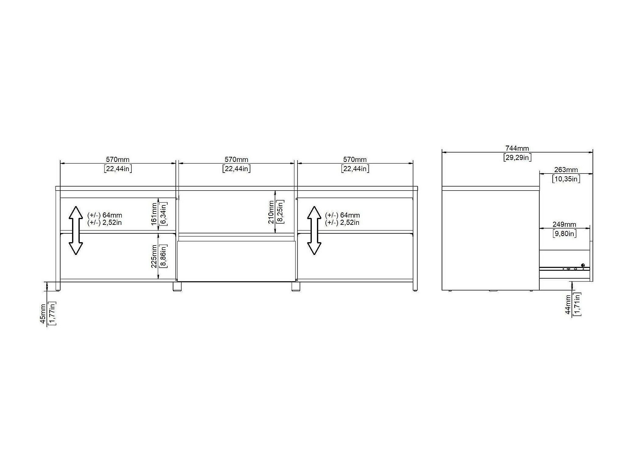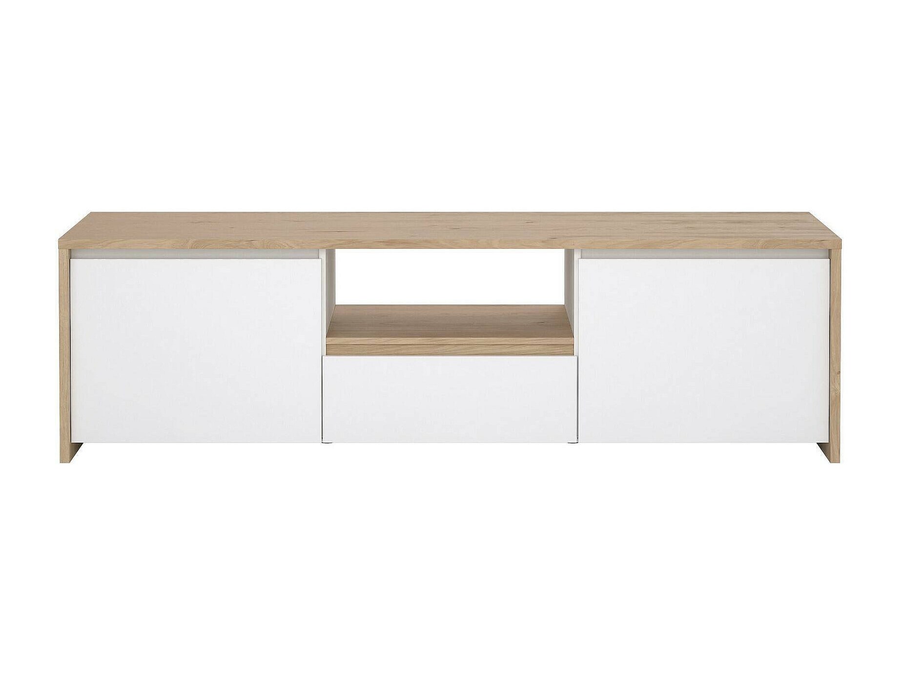 Meuble TV Dtessior, Buffet de salon, Armoire basse pour TV, Base murale de rangement, 179x48 h52 cm, Chêne clair et Blanc