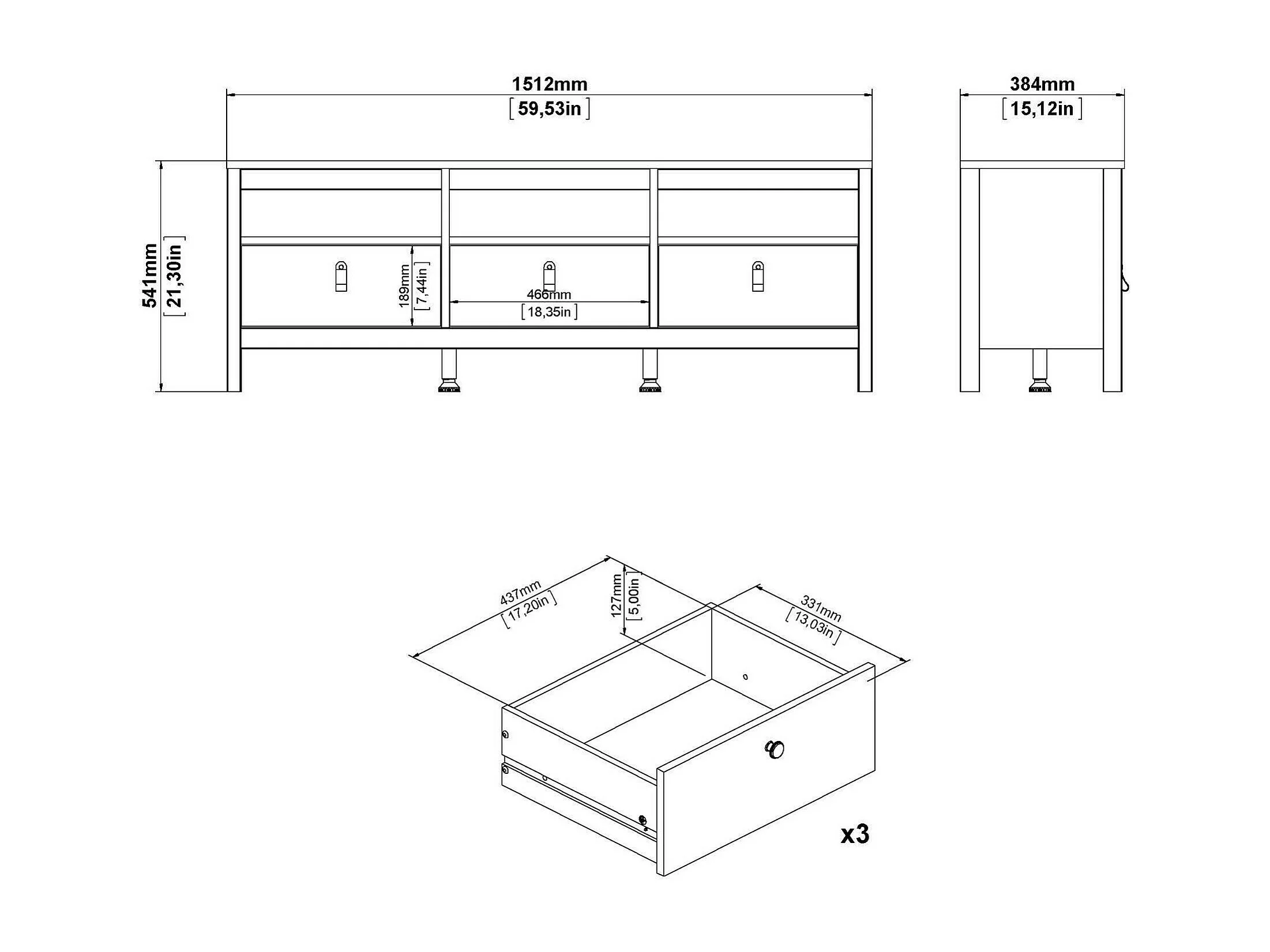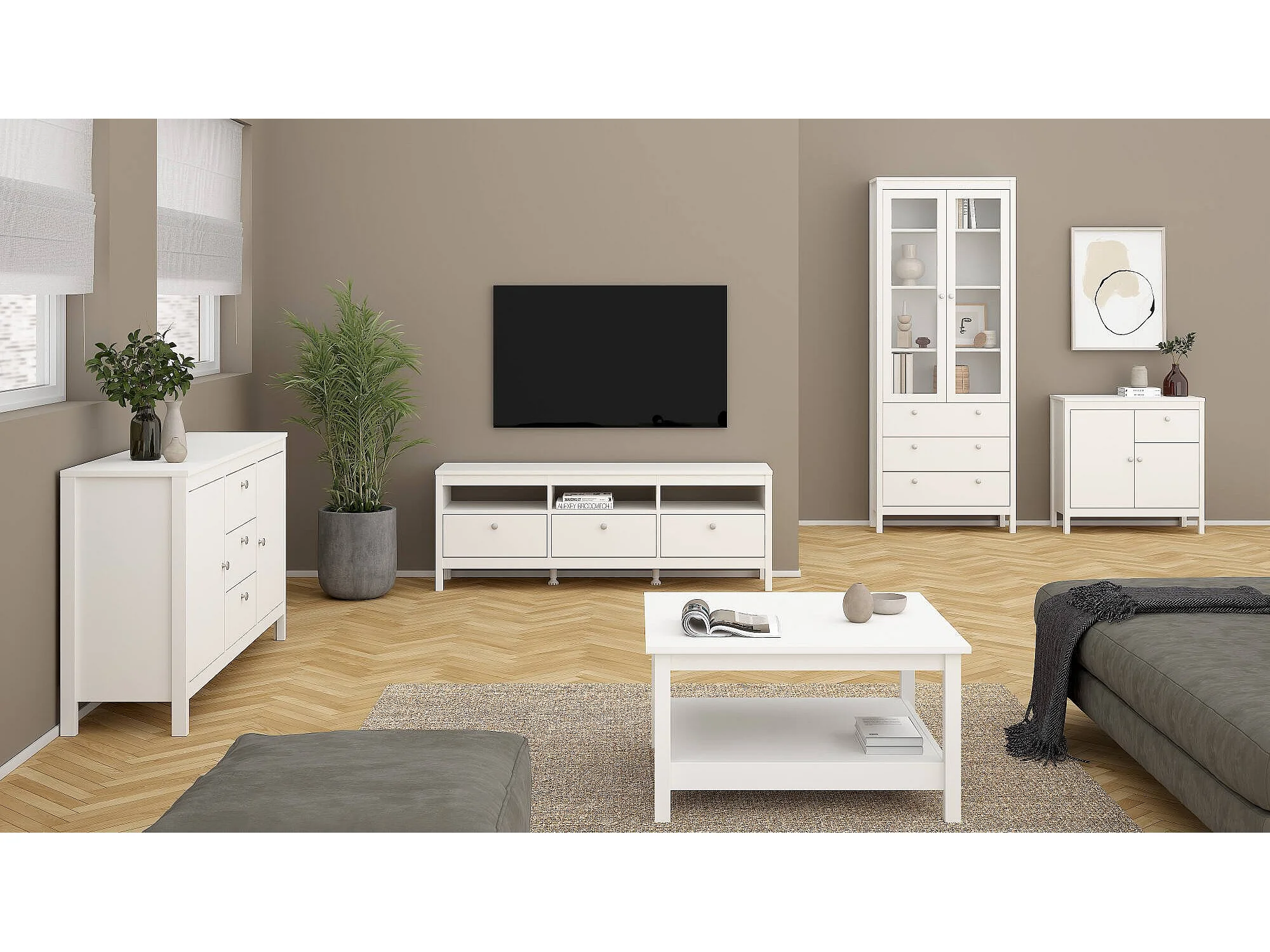 Meuble TV Dtofan, Buffet de salon, Armoire basse pour TV, Base murale de rangement, 151x38 h54 cm, Blanc