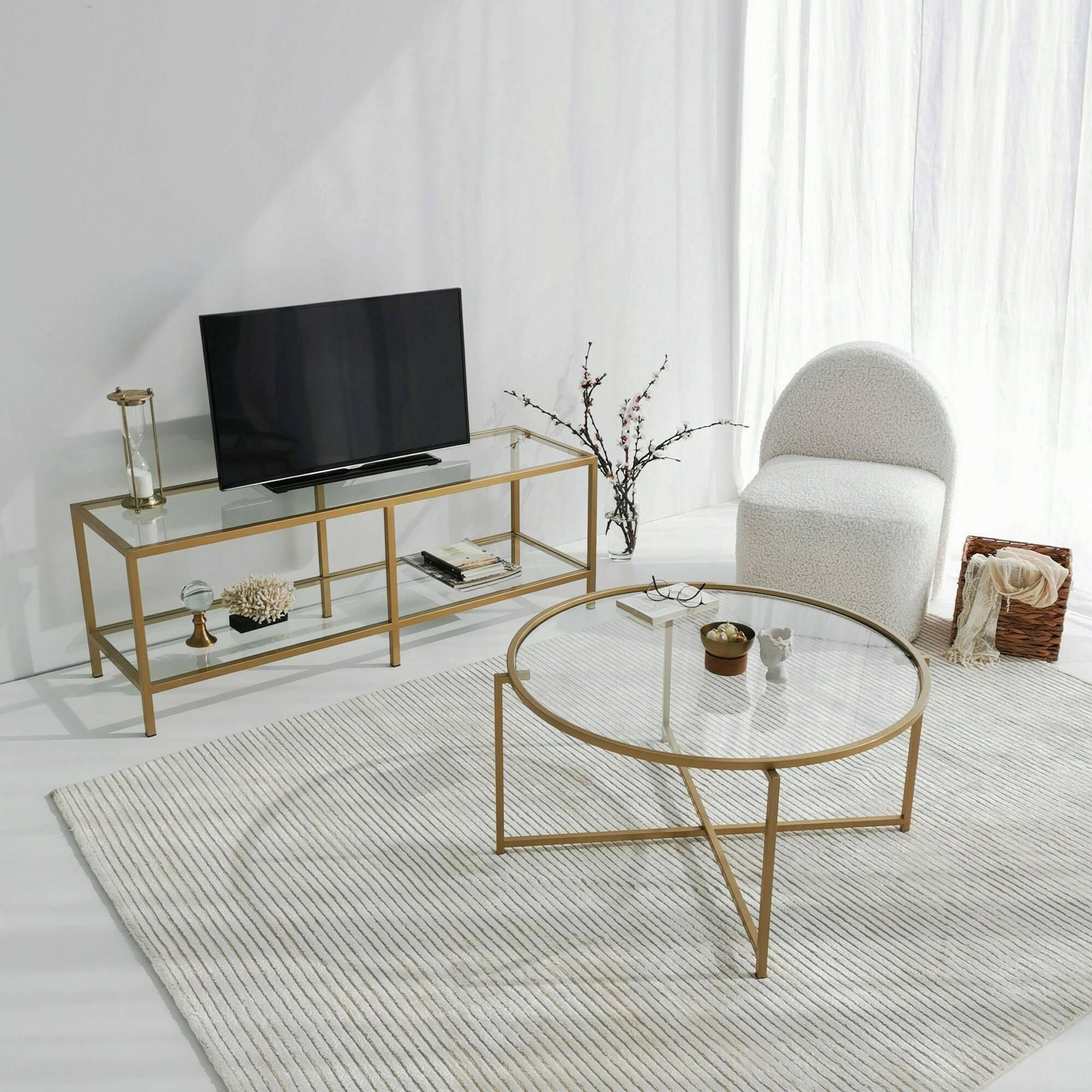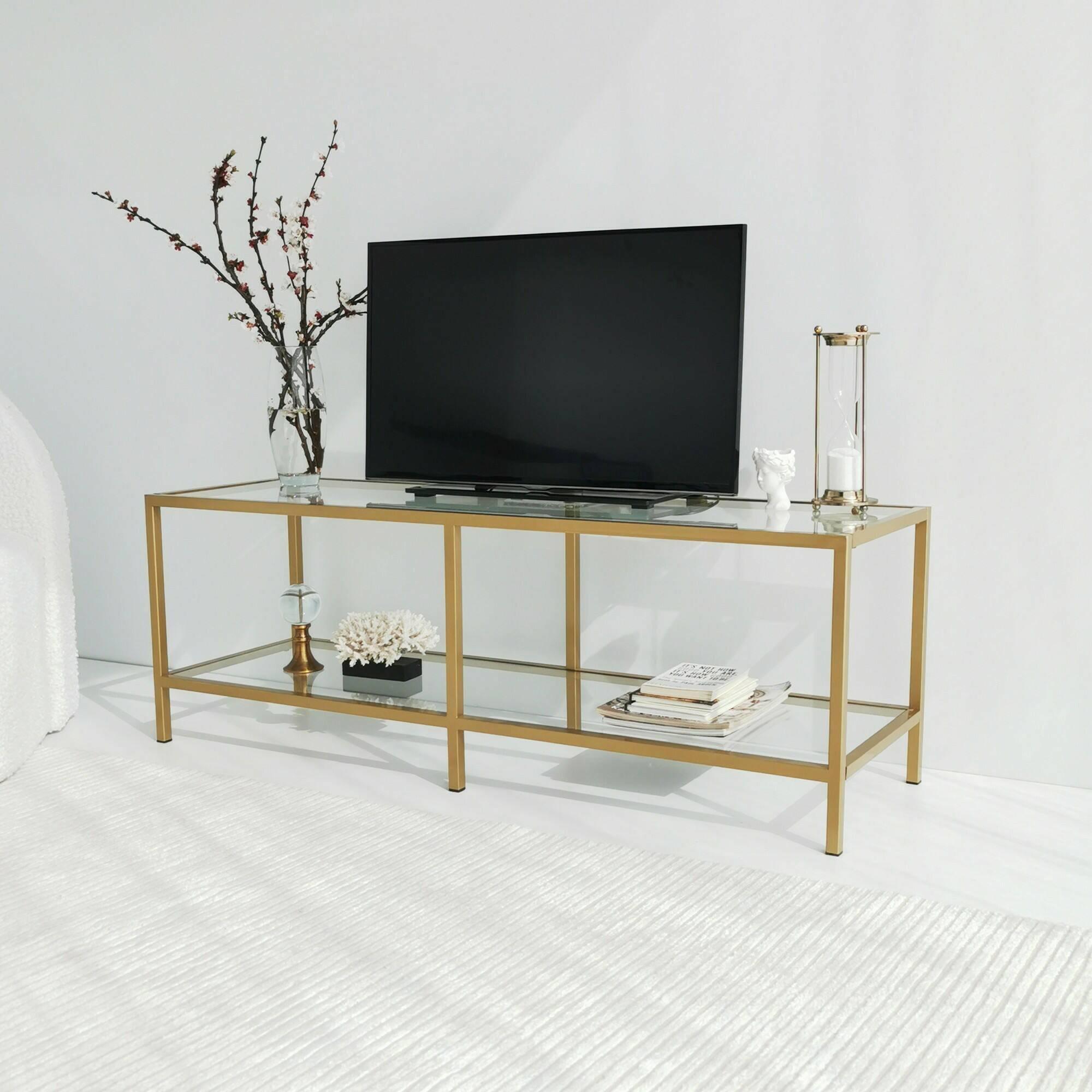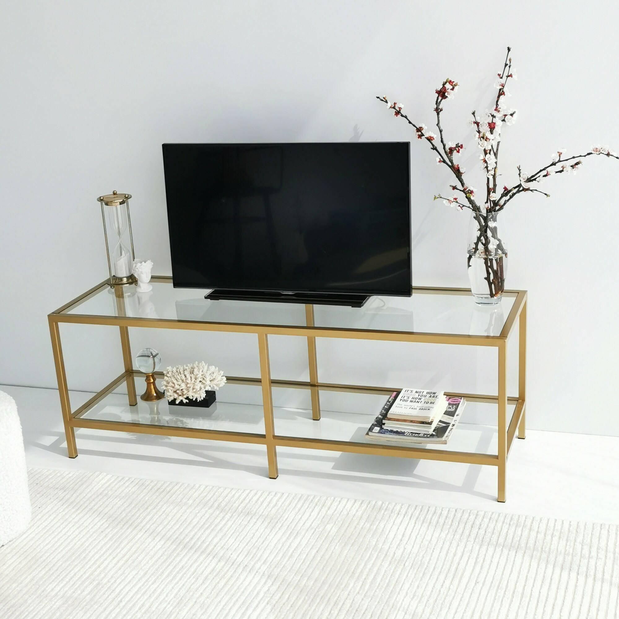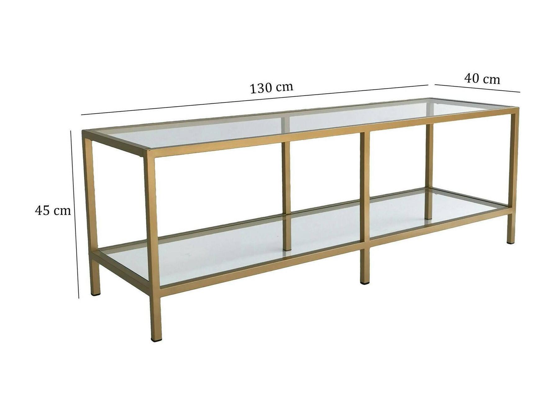 Meuble TV Electra, Buffet de salon, Armoire basse pour TV, Base murale de rangement, 130x40h45 cm, Or