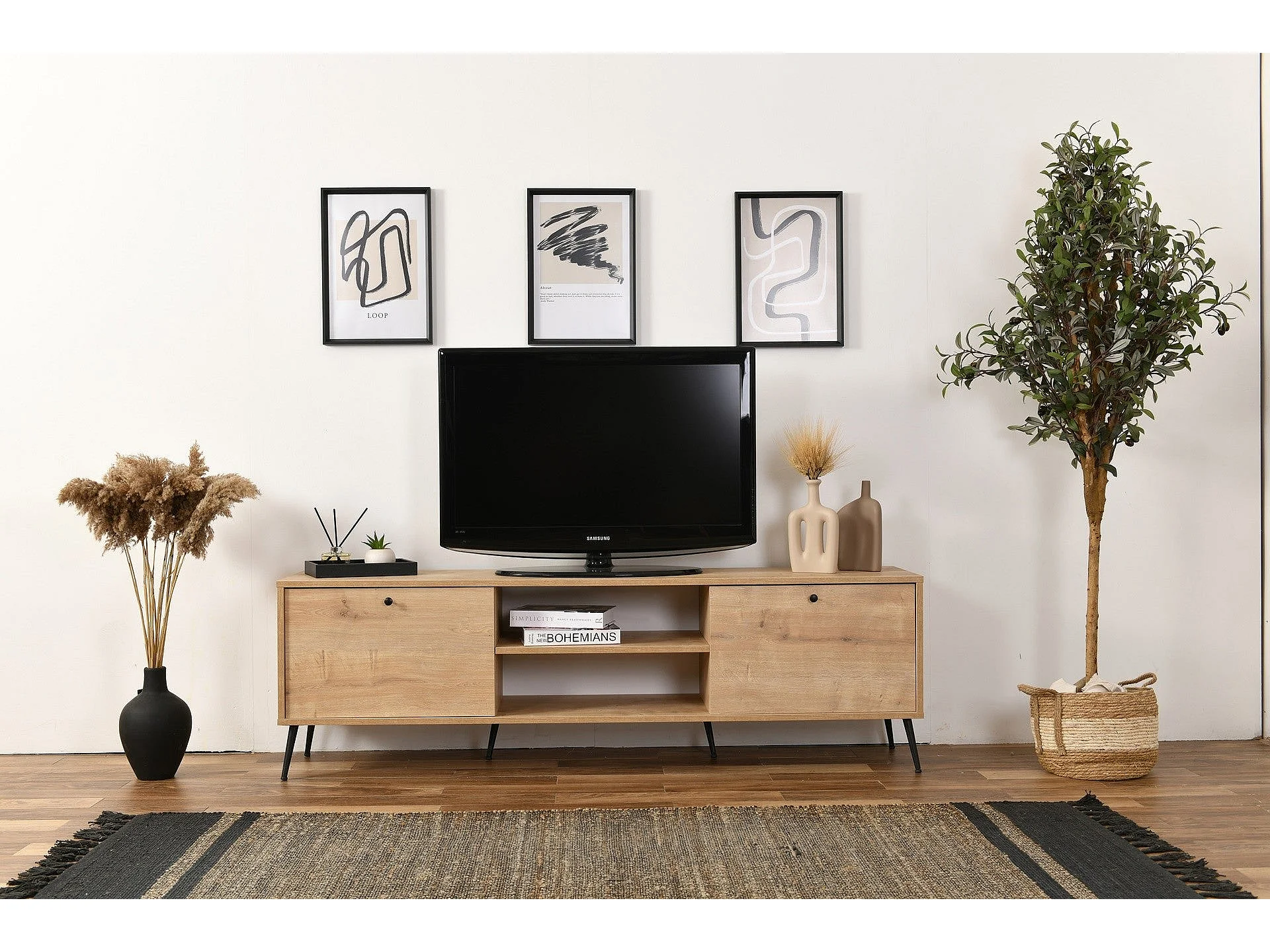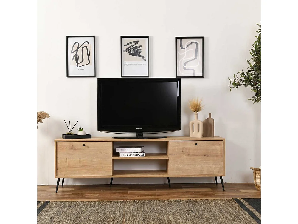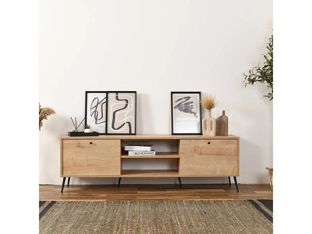 Meuble TV en aggloméré Calvin 180 x 41 x 55 cm - chêne