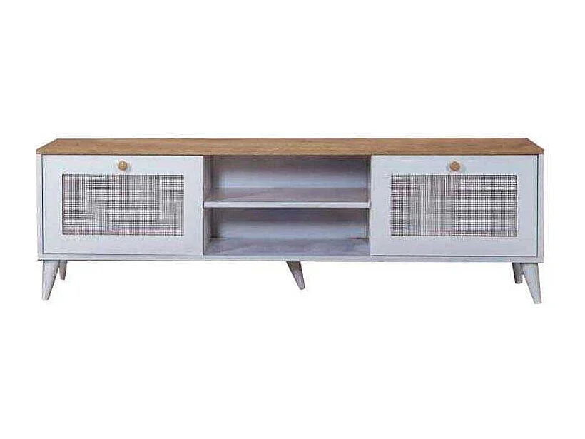 Meuble TV en aggloméré Calvin 180 x 41 x 55 cm - chêne et blanc