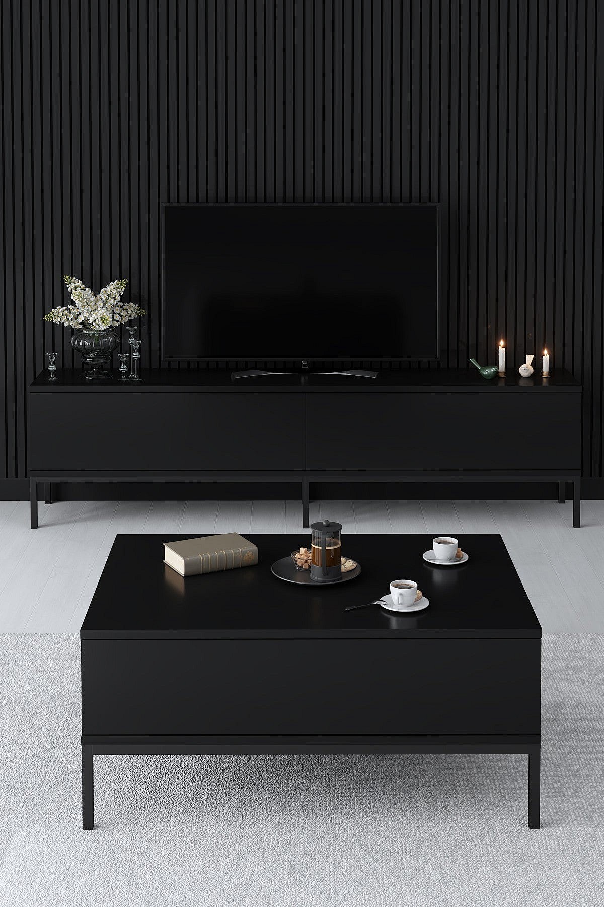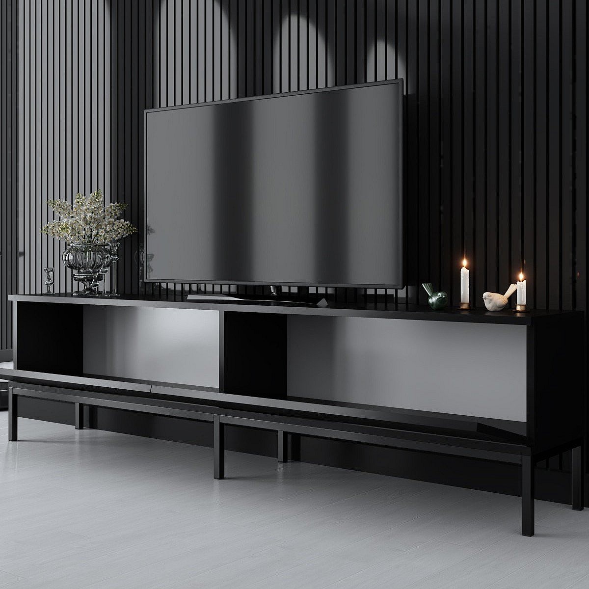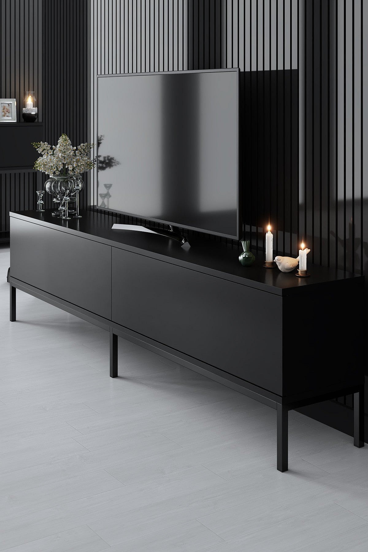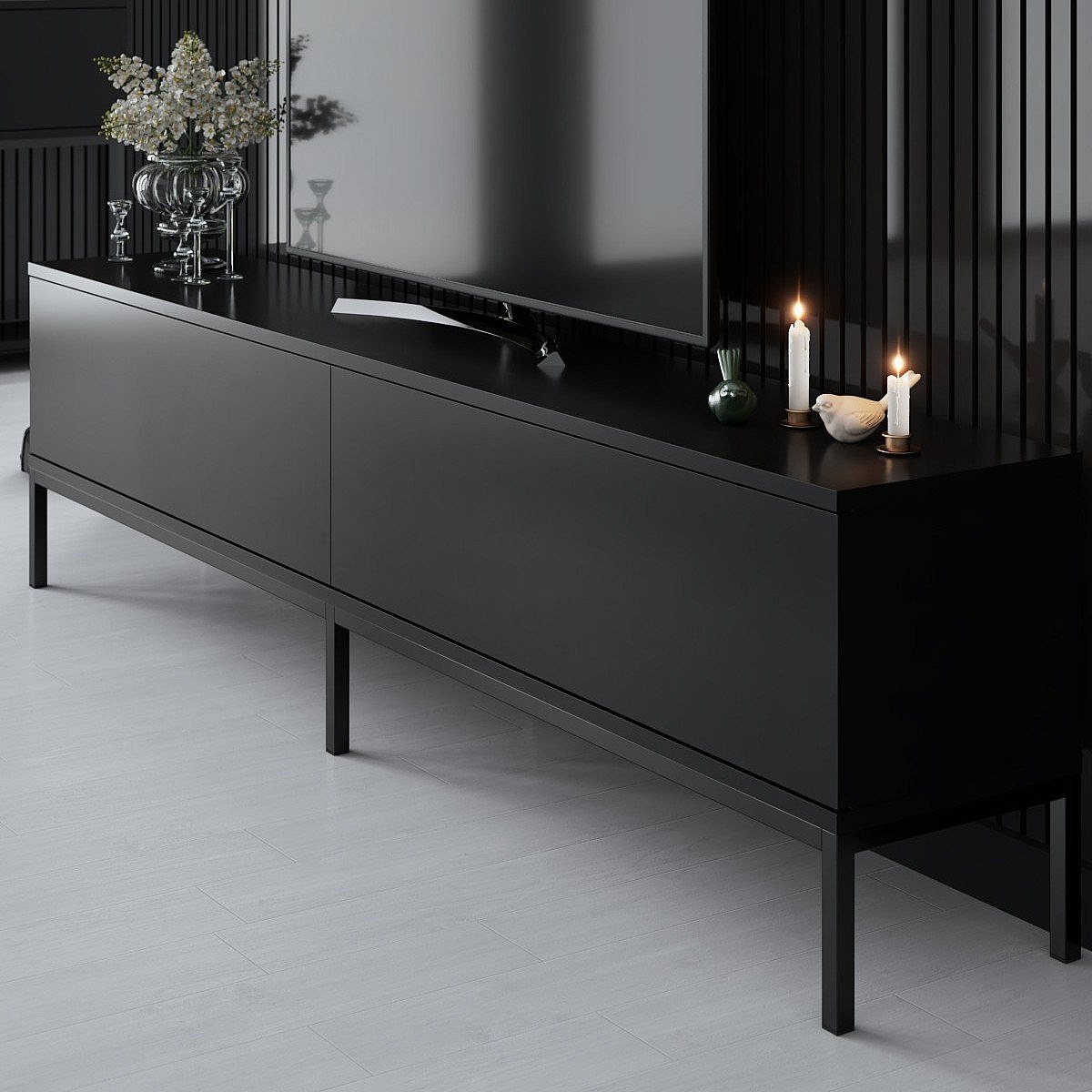 Meuble TV 2 portes rabattables noir L180 cm - LORD