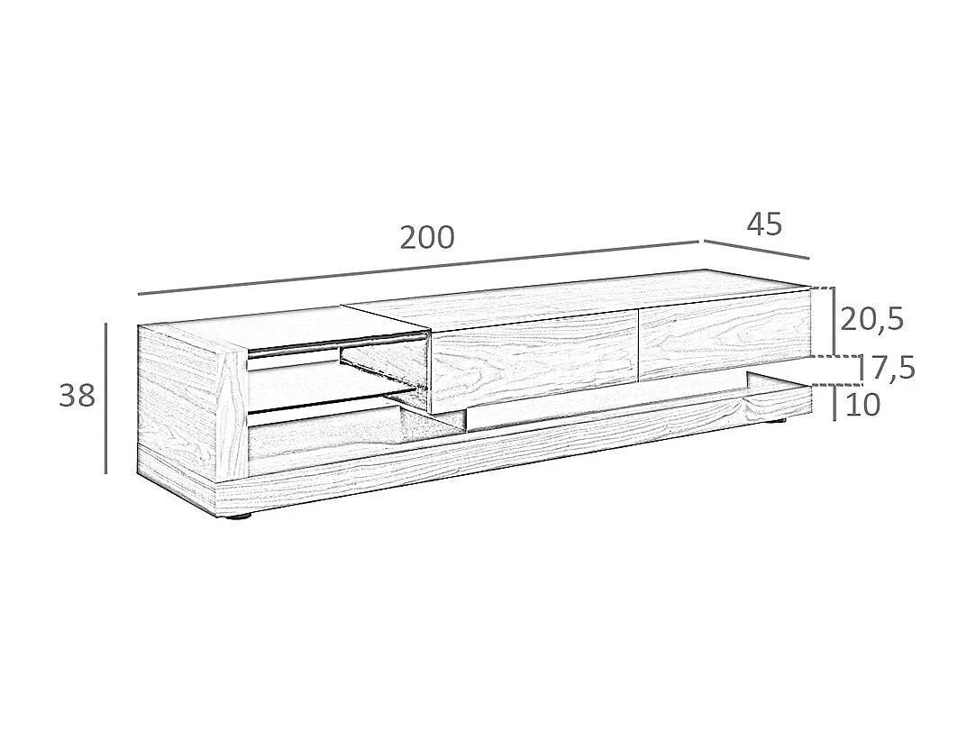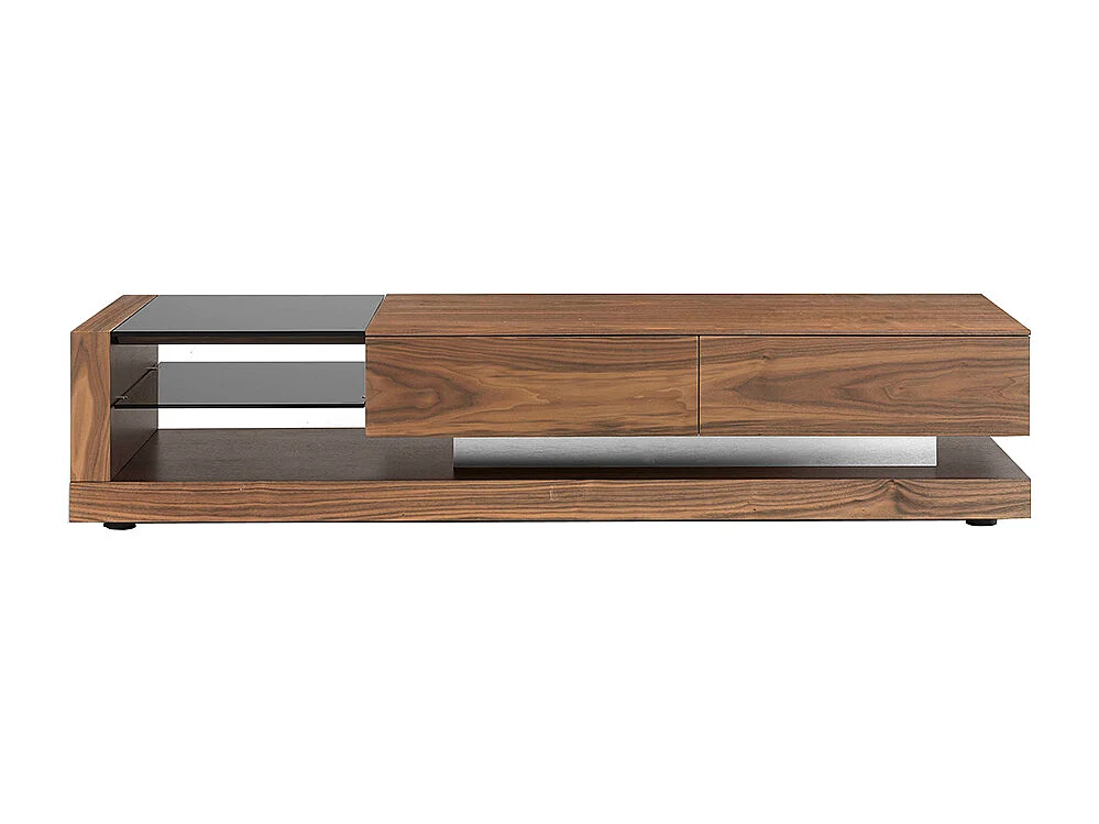 Meuble TV noyer, acier poli et plateau en verre noir 3139 ANGEL CERDA
