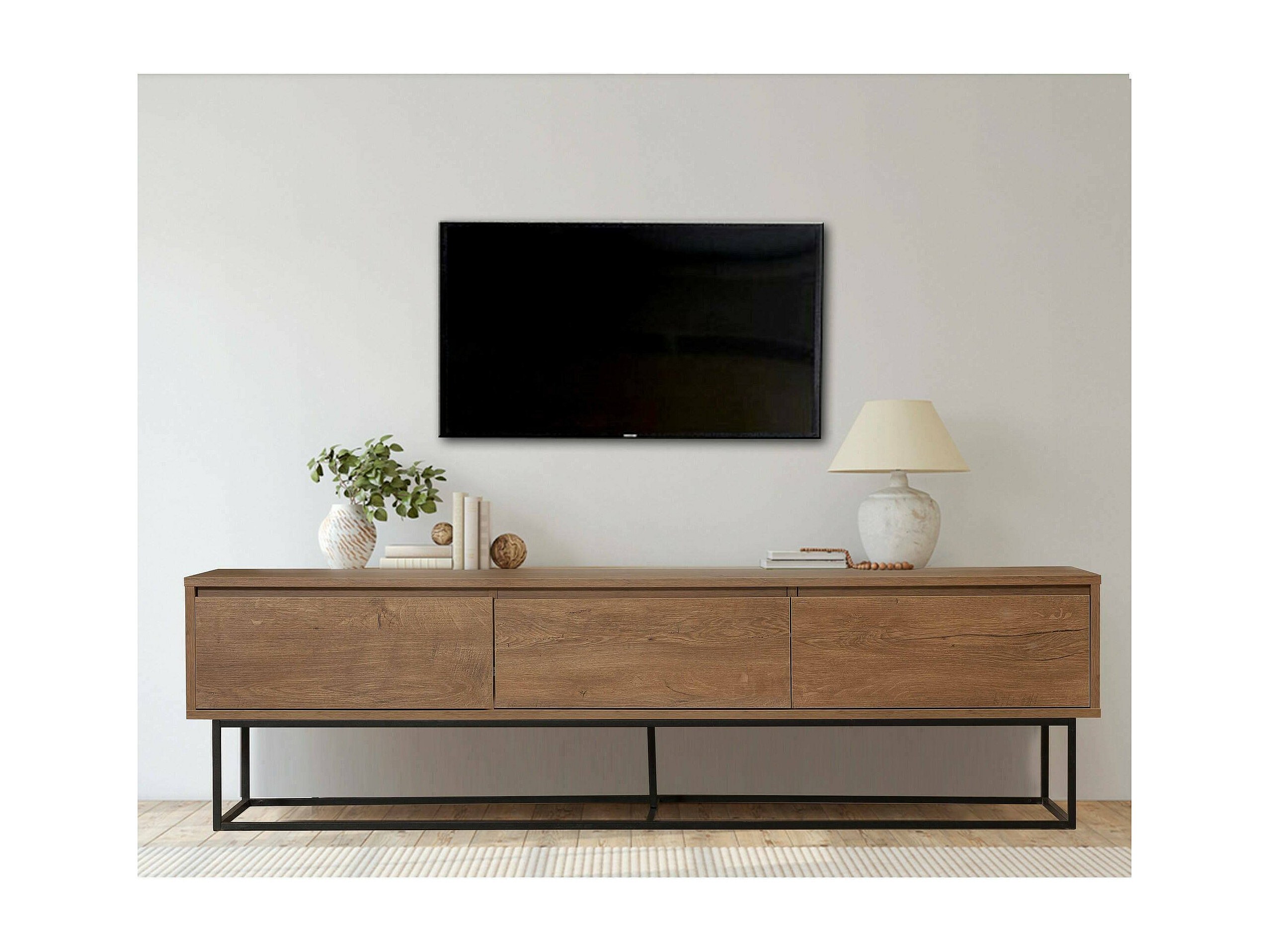 Meuble TV Eos, Buffet de salon, Armoire basse pour TV, Base murale de rangement, 180x40h50 cm, Noyer et Noir