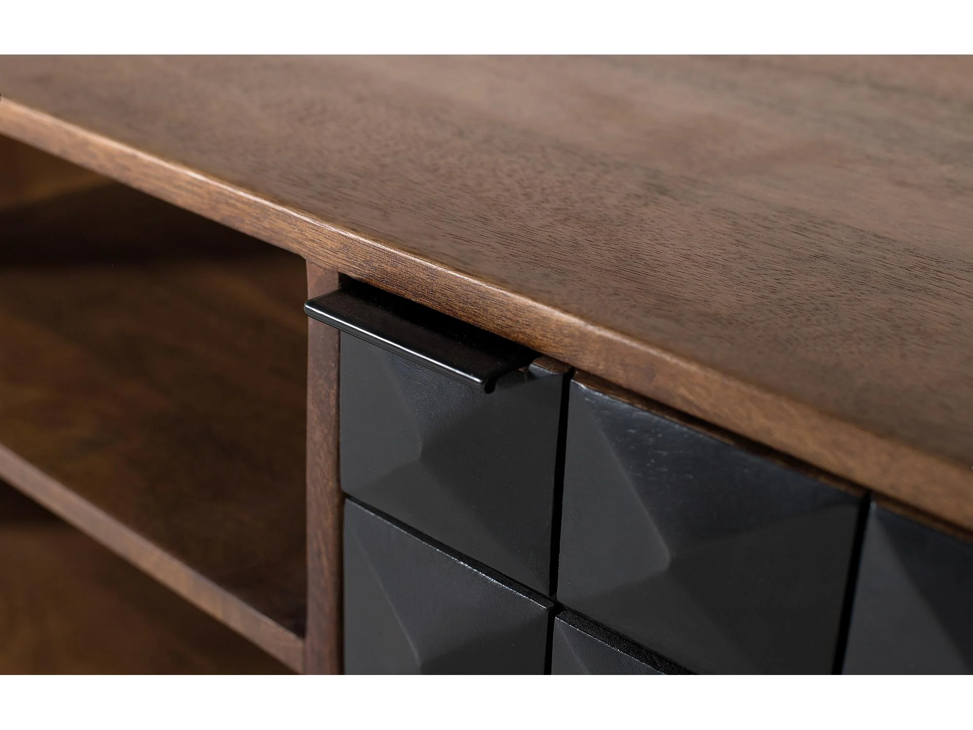 Meuble TV fait main en bois de manguier avec pieds dorés, 150 cm