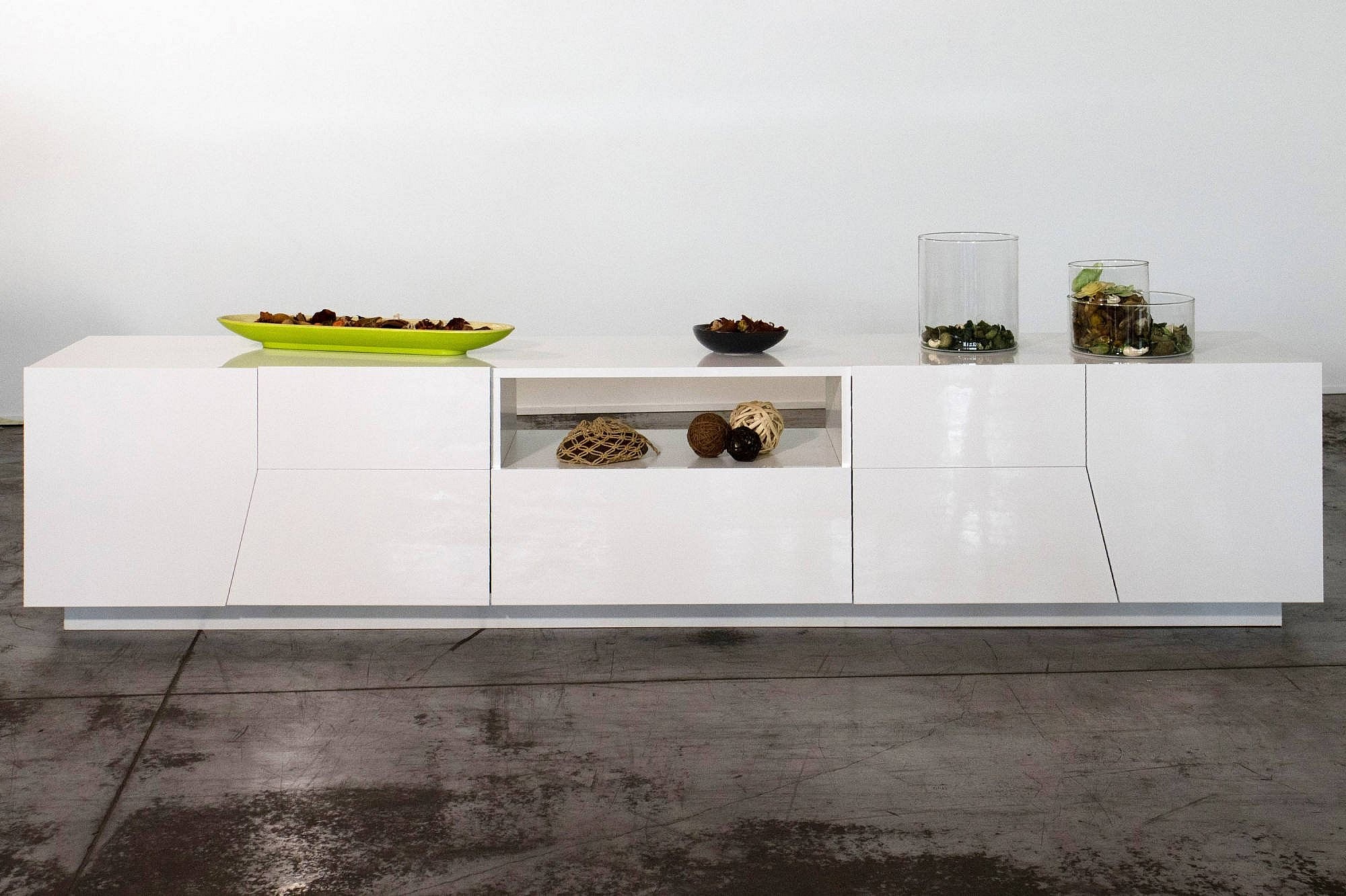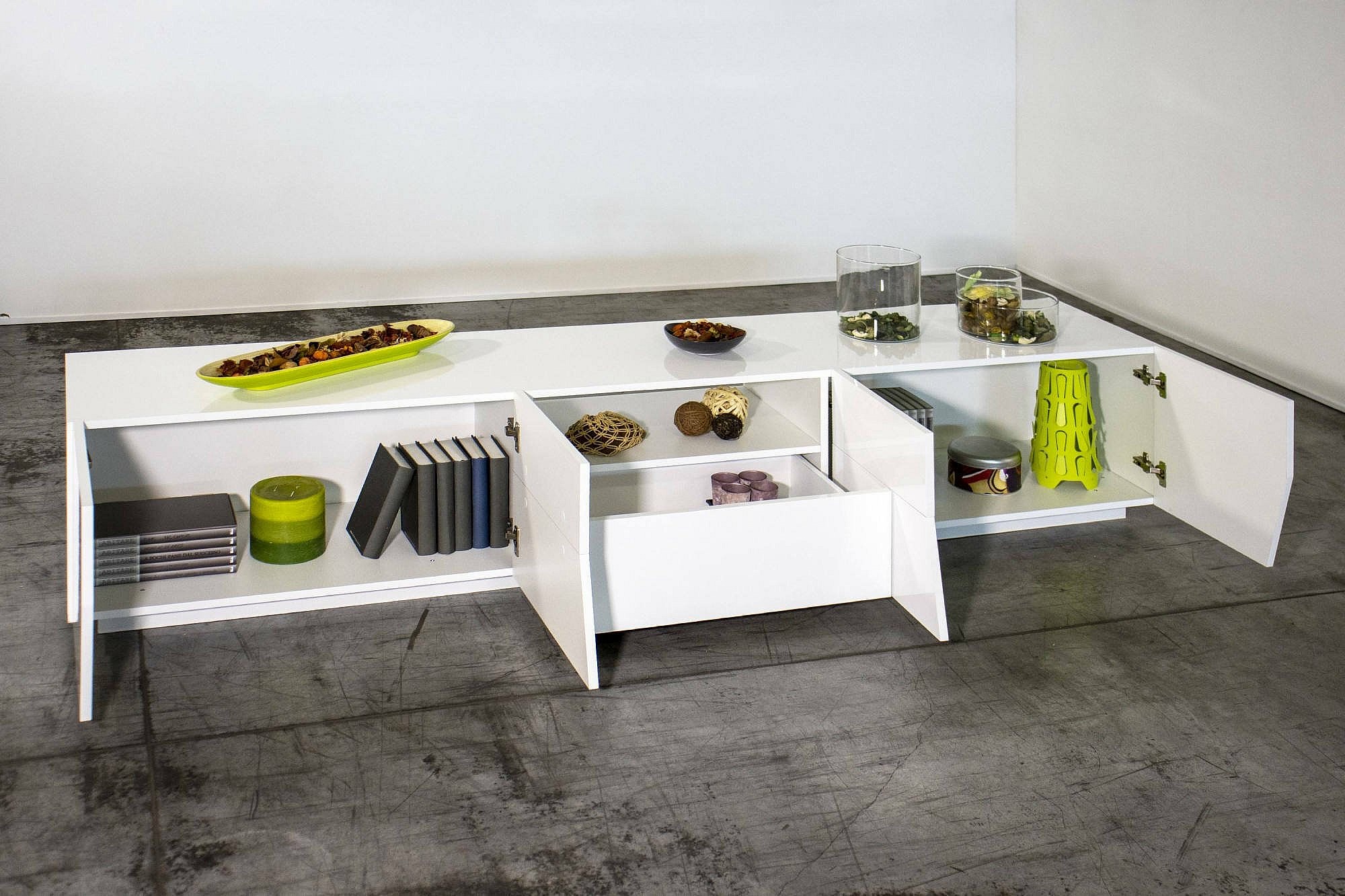 Meuble TV Jacopo, Buffet bas de salon, Base pour meuble TV, 100% Made in Italy, 220x43h46 cm, Blanc brillant