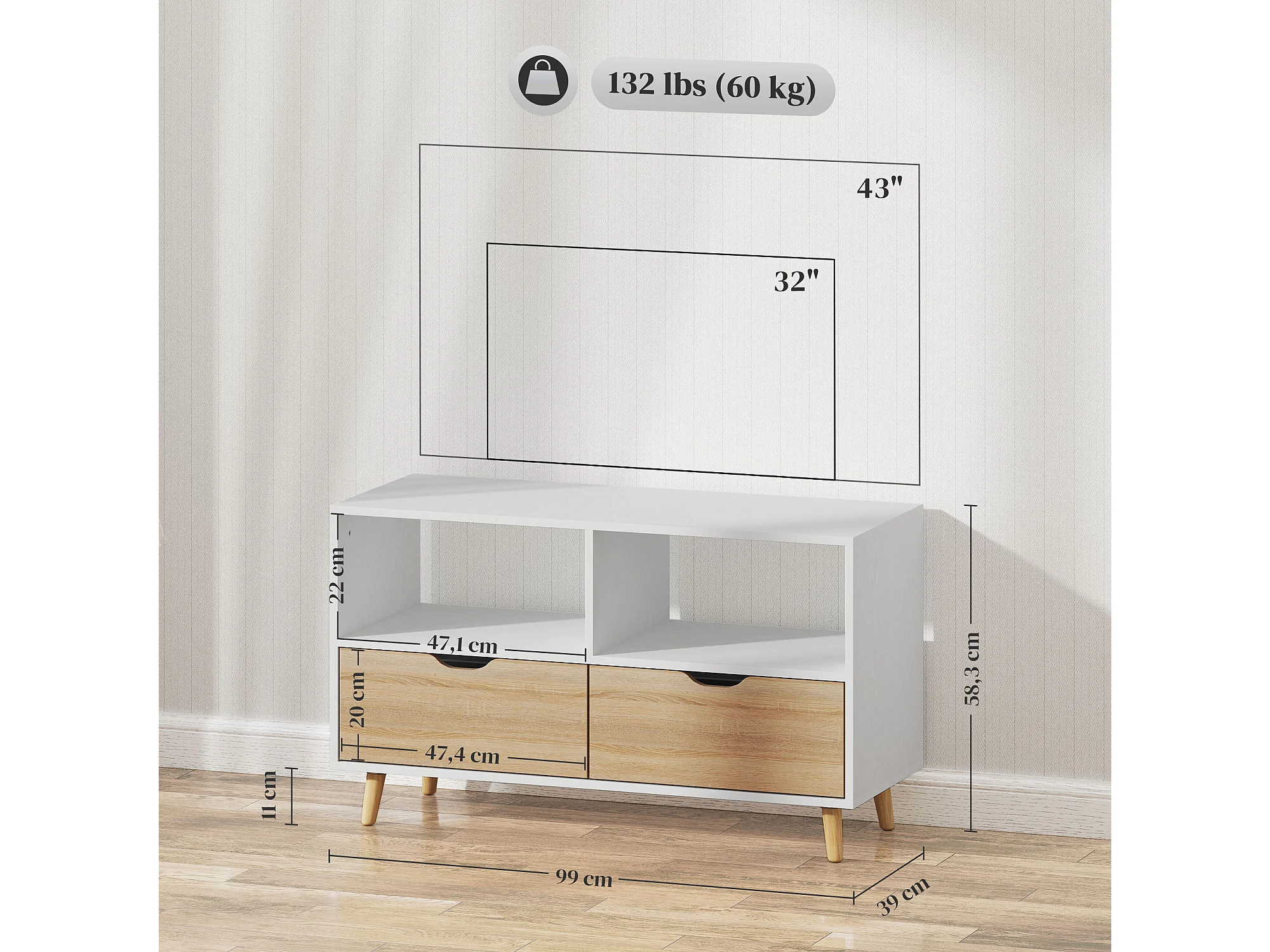 Meuble TV Lowboard avec 2 étagères, tiroir, 99 cm de Long Table TV pour téléviseur, pour Salon,Blanc