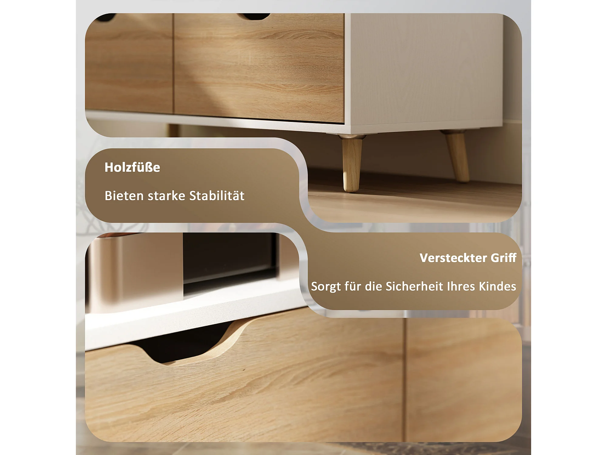 Meuble TV Blanc, 2 Tiroirs,2 Portes Coulissantes, Télévision en Bois, pour Salon Chambre,160x40x58cm