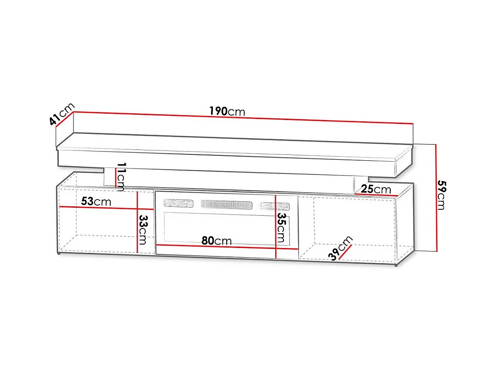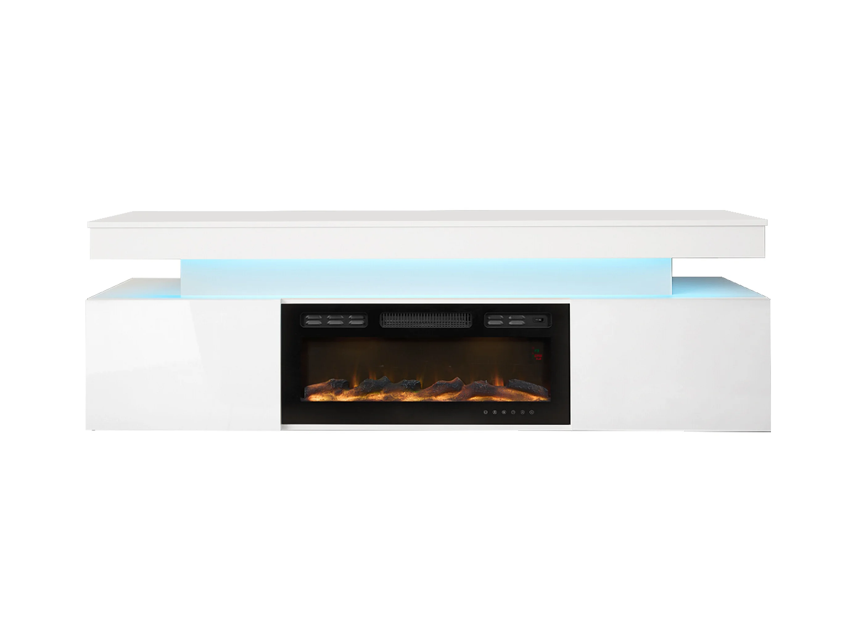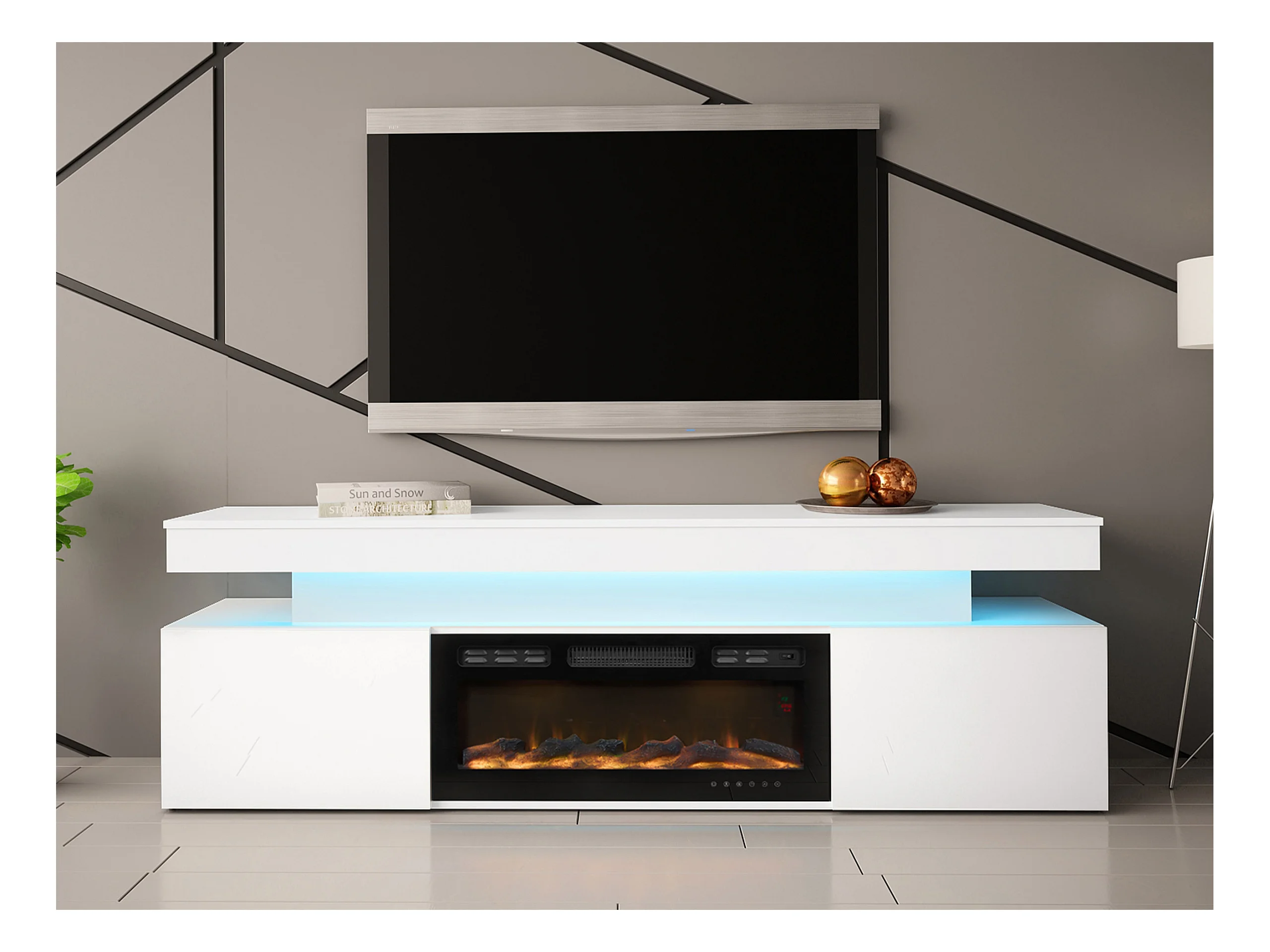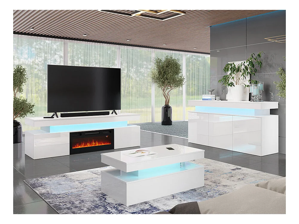 Meuble TV Monfero 104, Blanc|Blanc brillant, 190x59x41cm