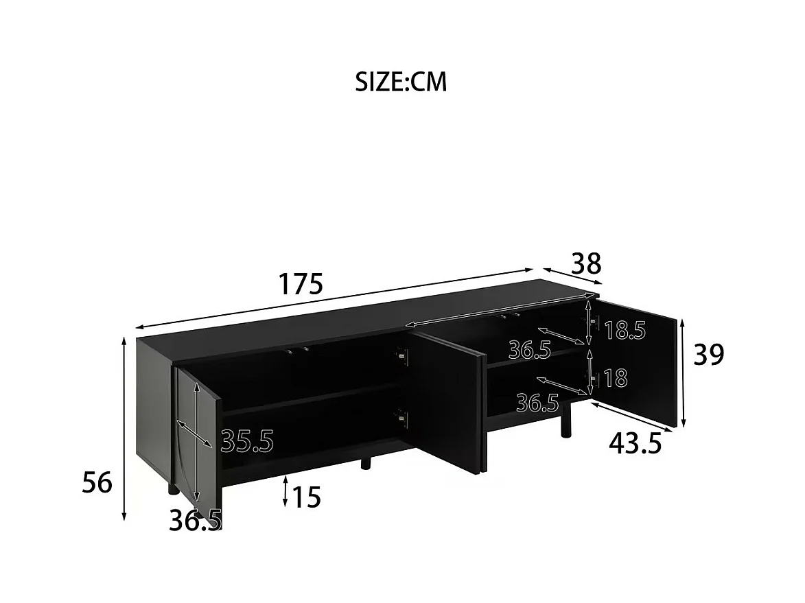 Meuble TV moderne - avec étagères réglables - en panneaux de particules - Noir