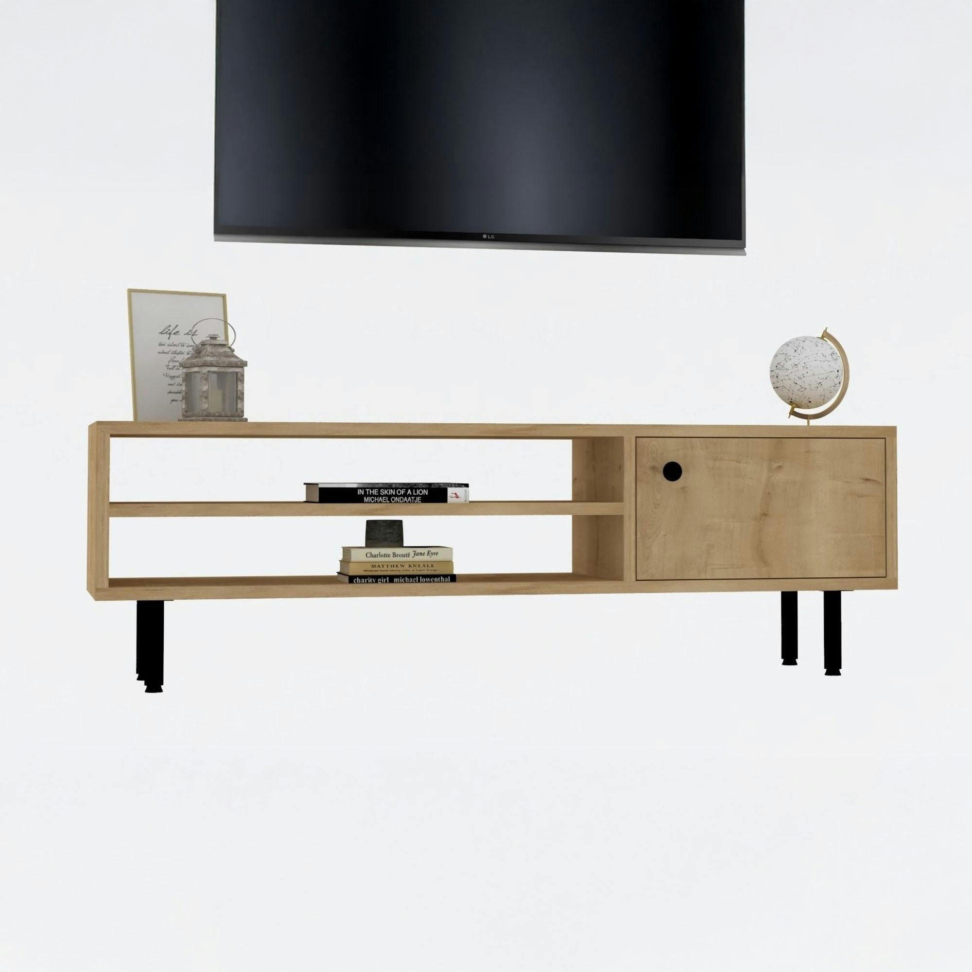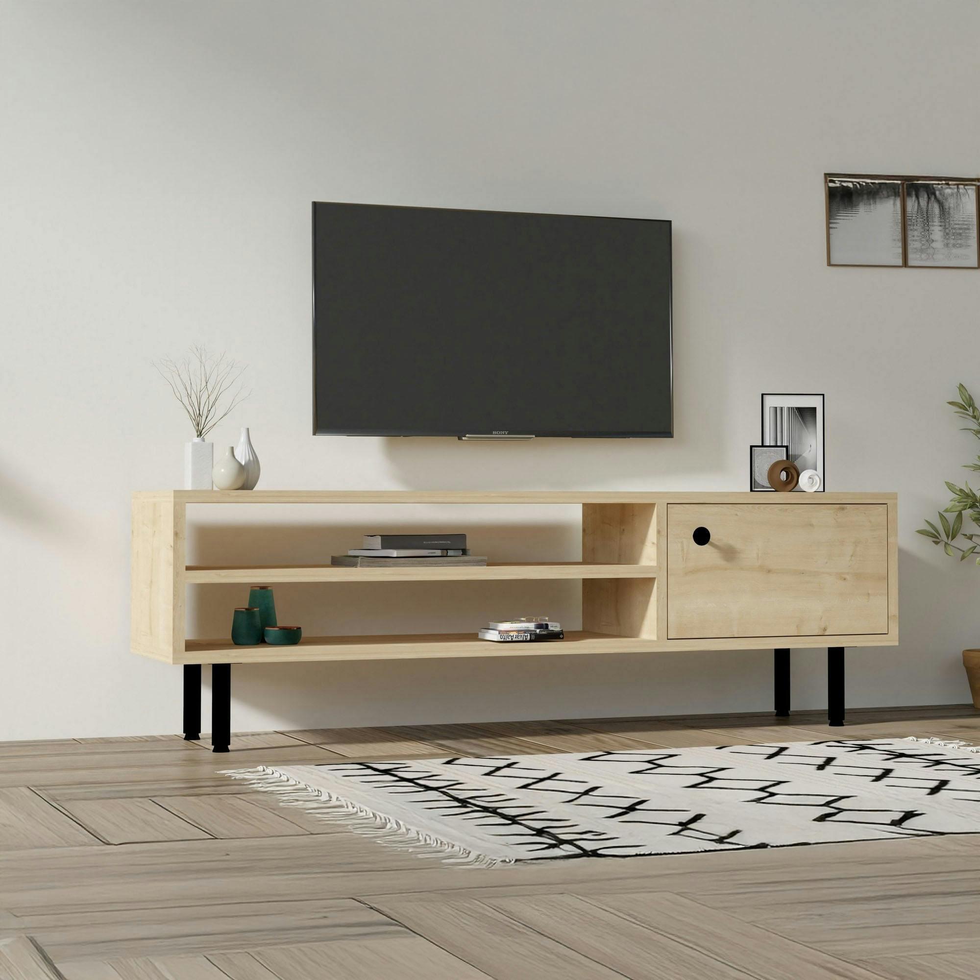 Meuble TV moderne effet bois clair - 2 niches traversantes JENA