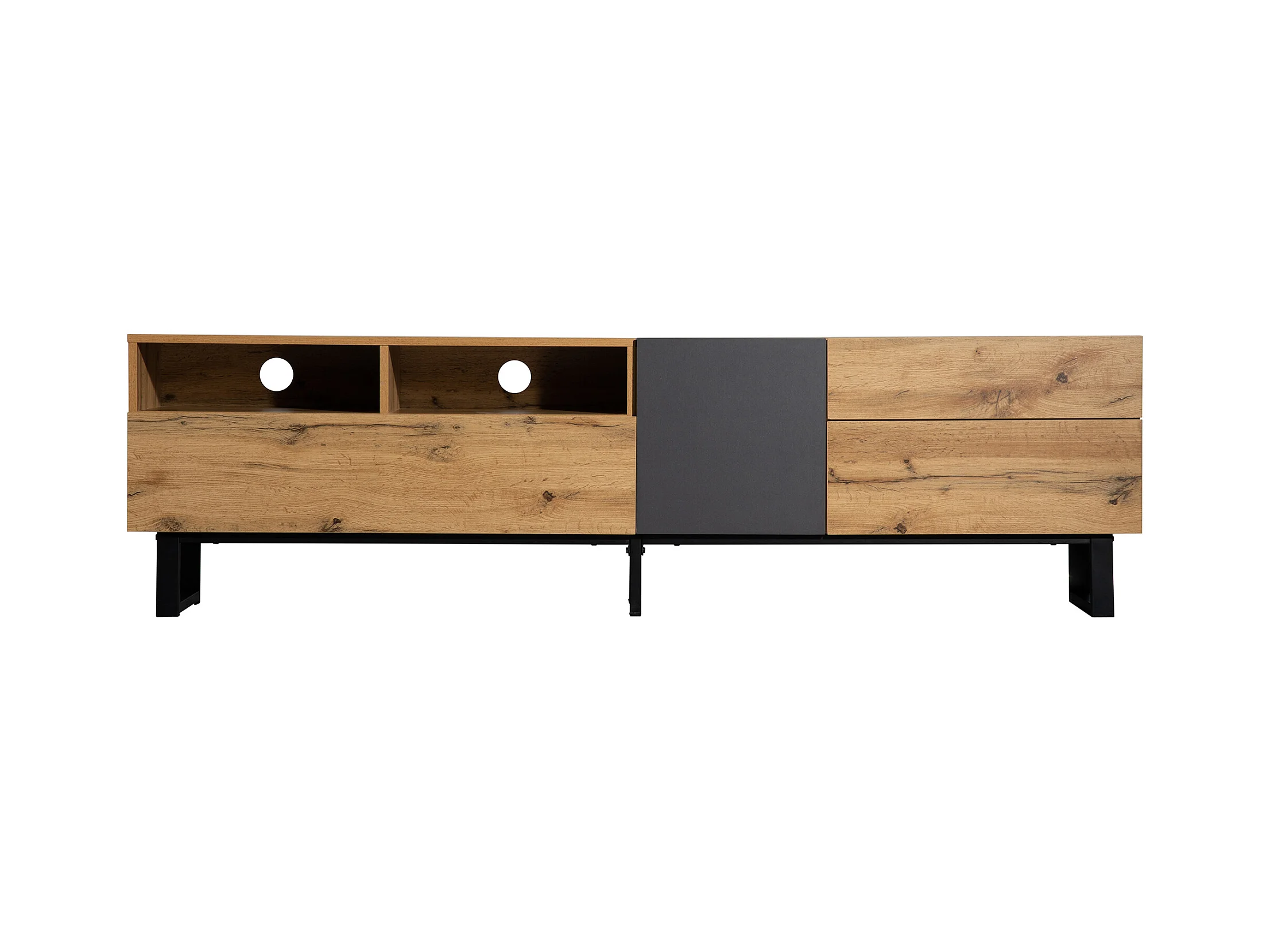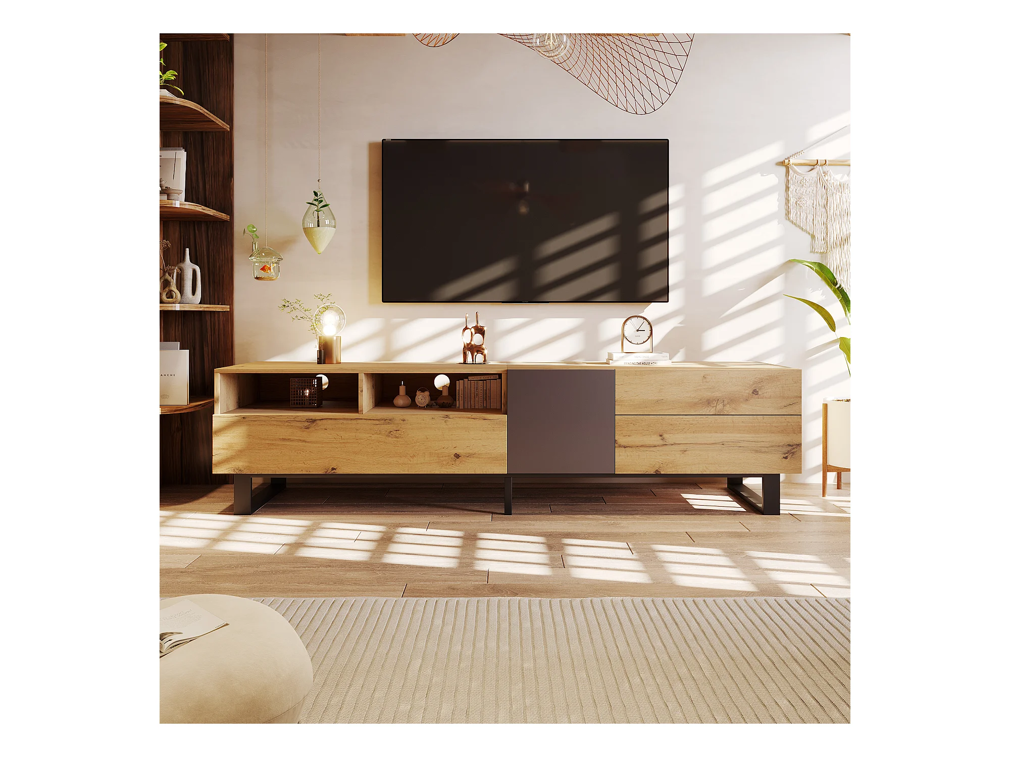 Meuble TV moderne en colorblocking : avec venature de bois, 180 cm – Un accessoire tendance pour votre espace médiatique stylé