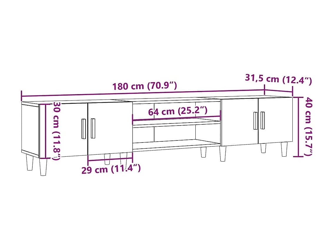 Meuble TV multimédia étagère bois marron 180 x 31.5 x 40 cm 02_0027250