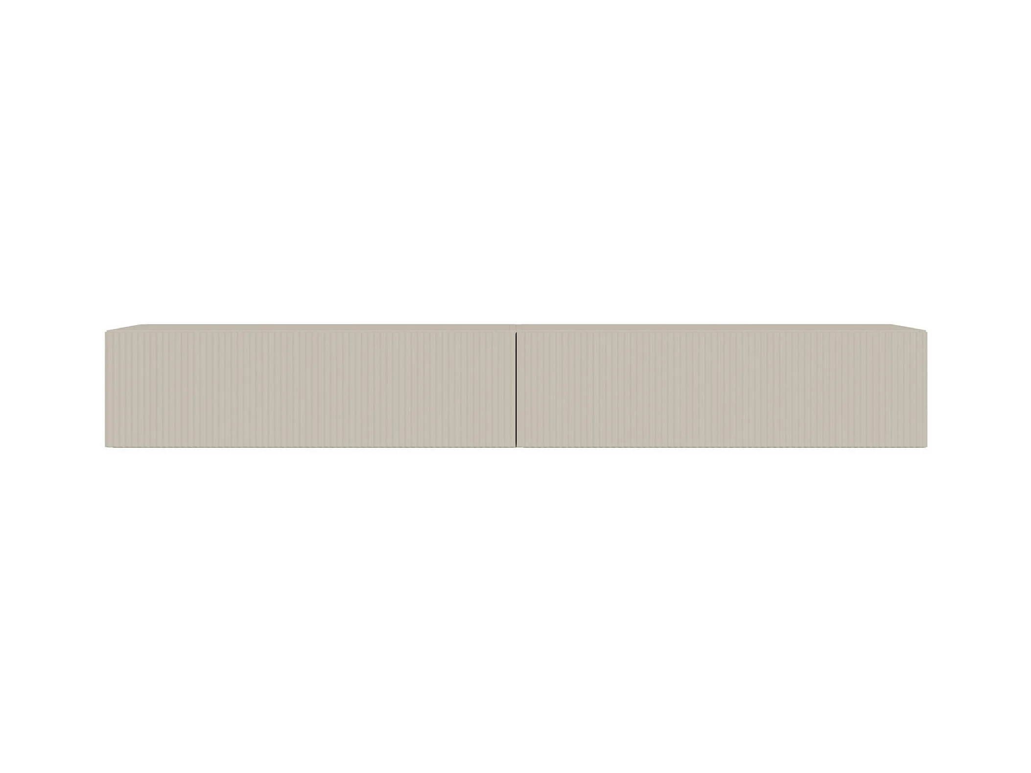 Meuble TV mural avec façades à lamelles rainurées – 2 portes – beige gris – 200 cm – VELDIO