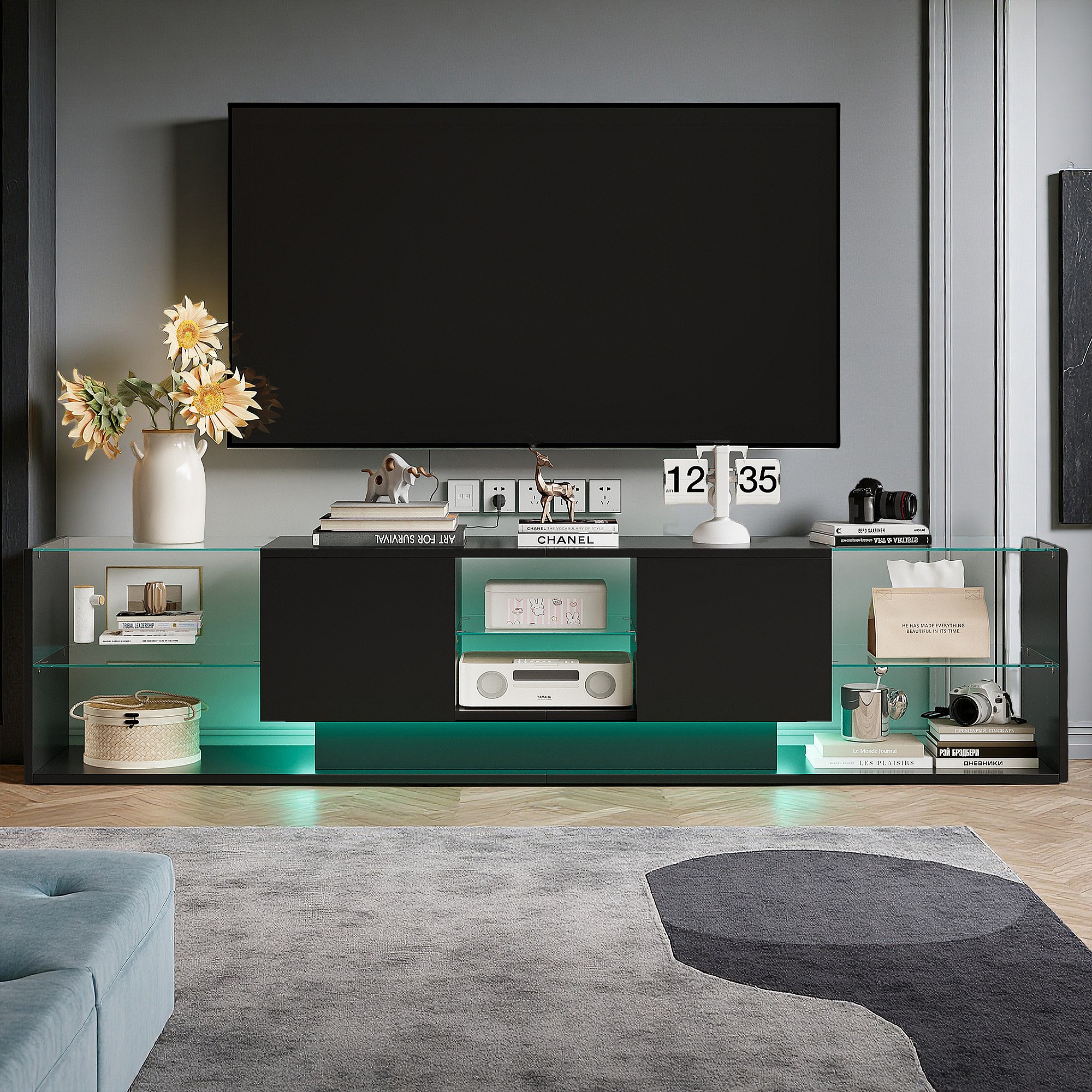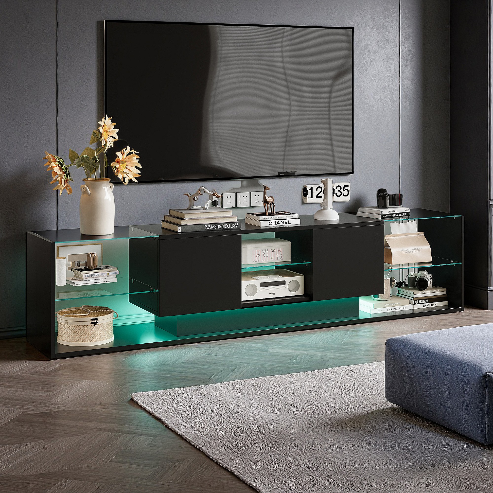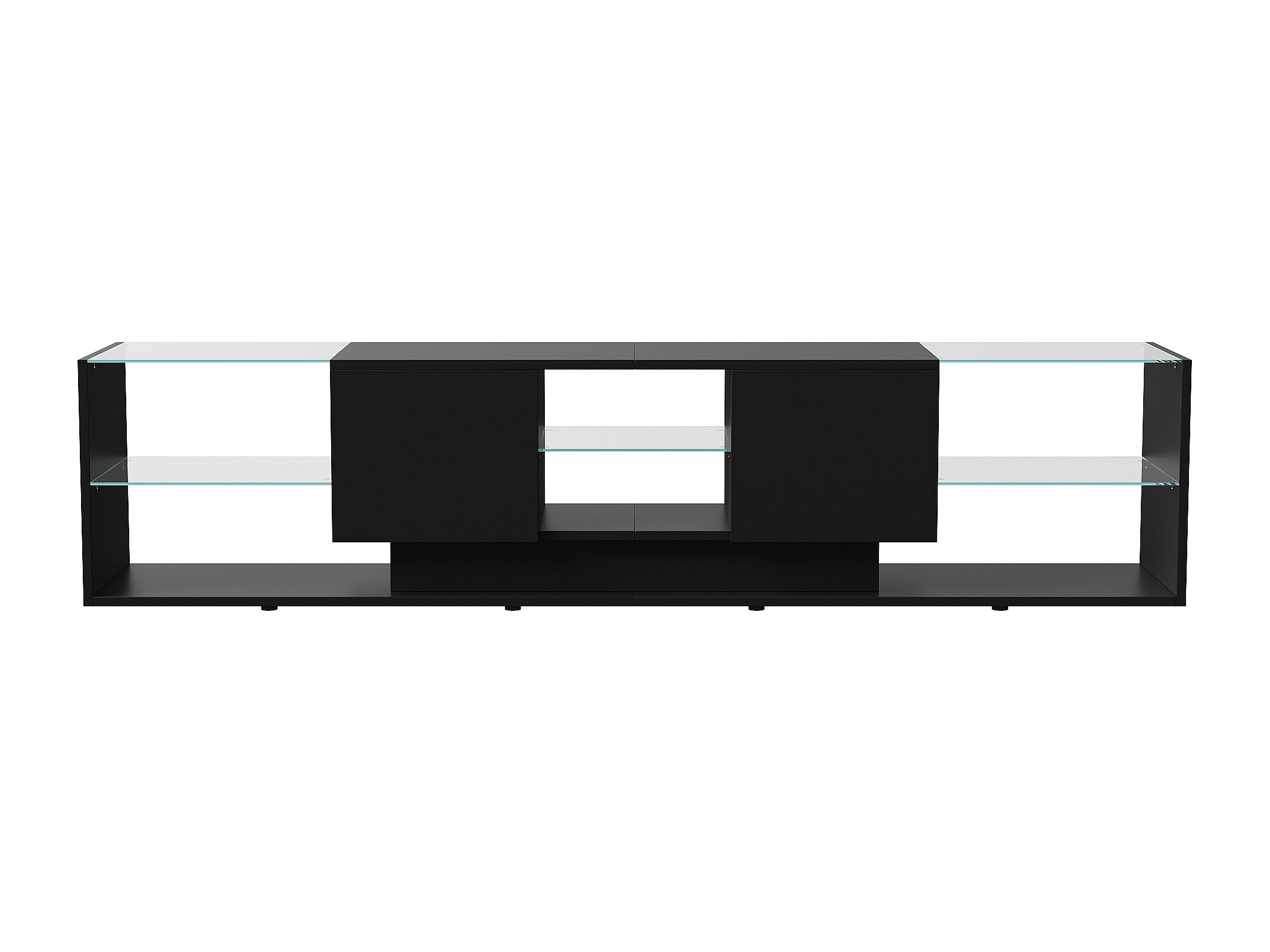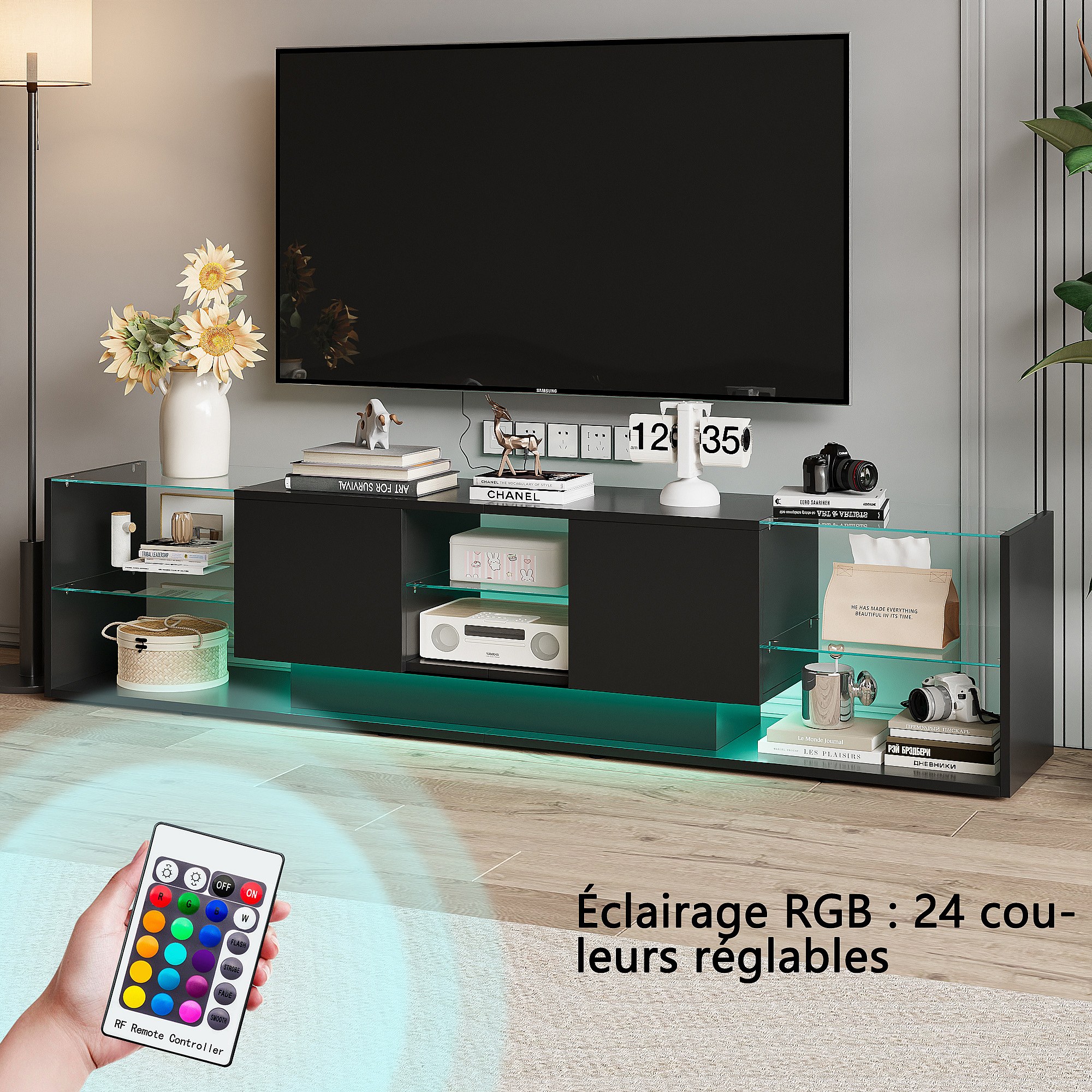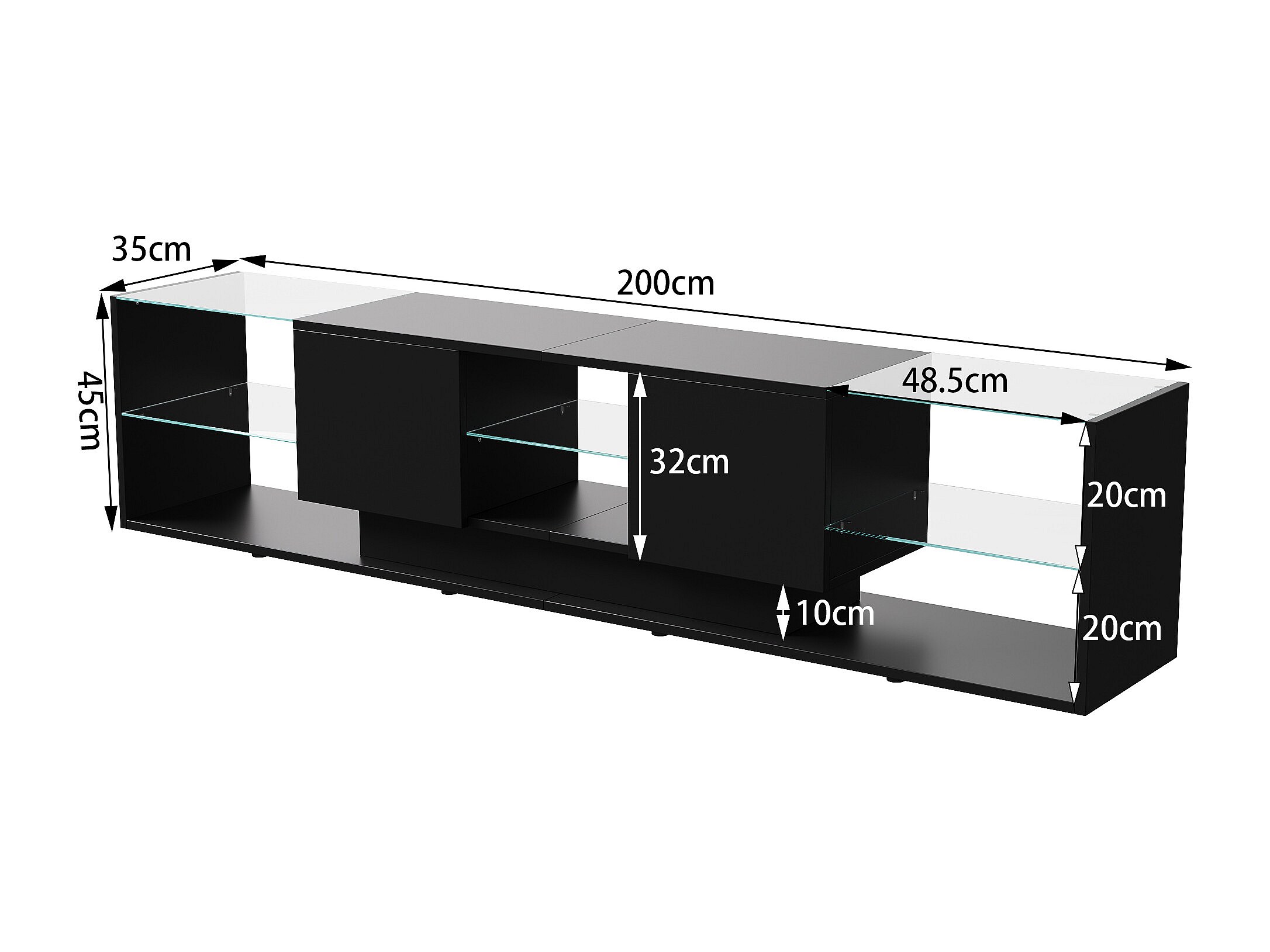 Meuble TV - NEXU - meuble de salon - meuble TV salon - LED - 2 tiroirs - étagère en verre trempé - 200x35x45 cm - noir