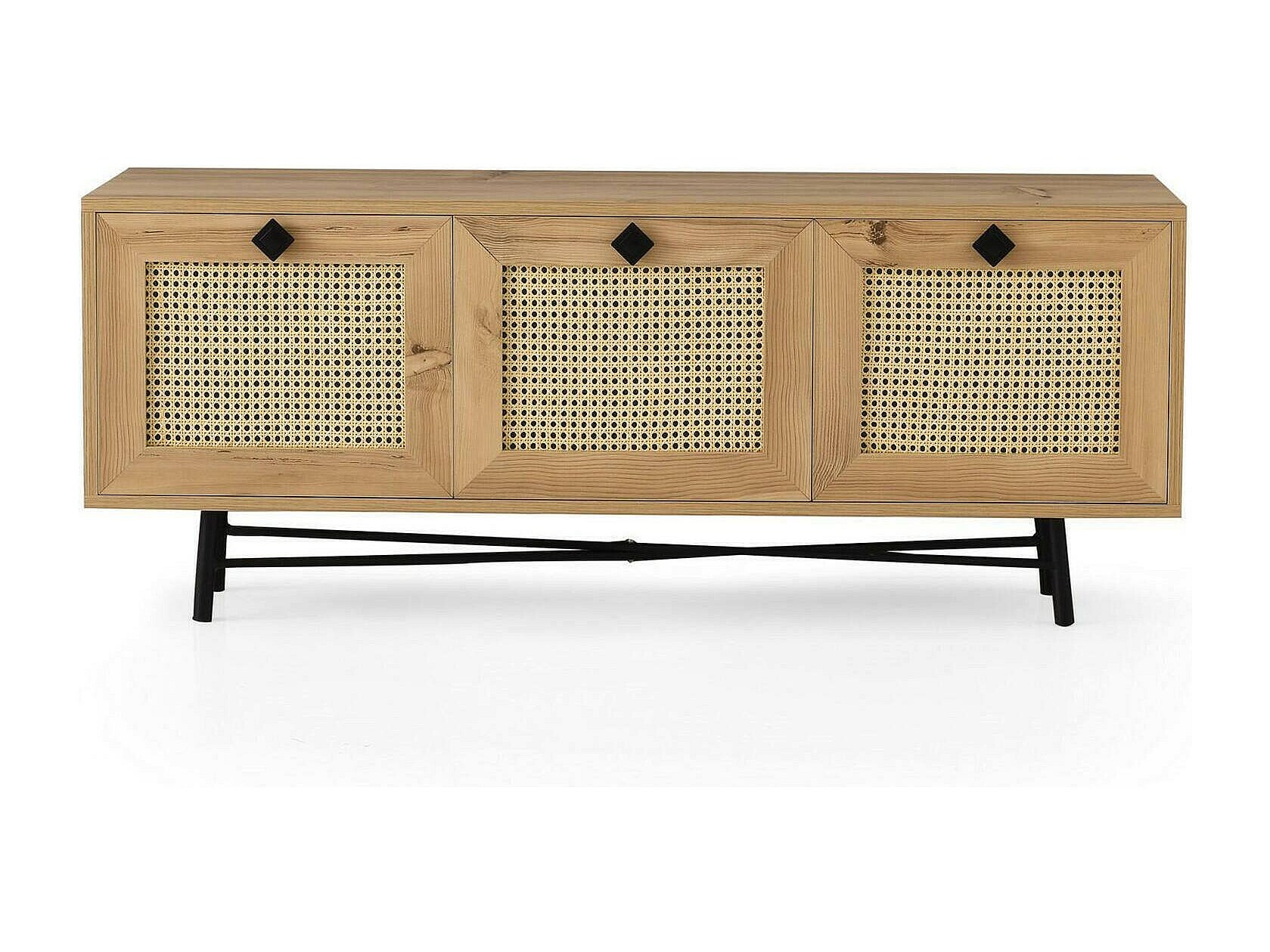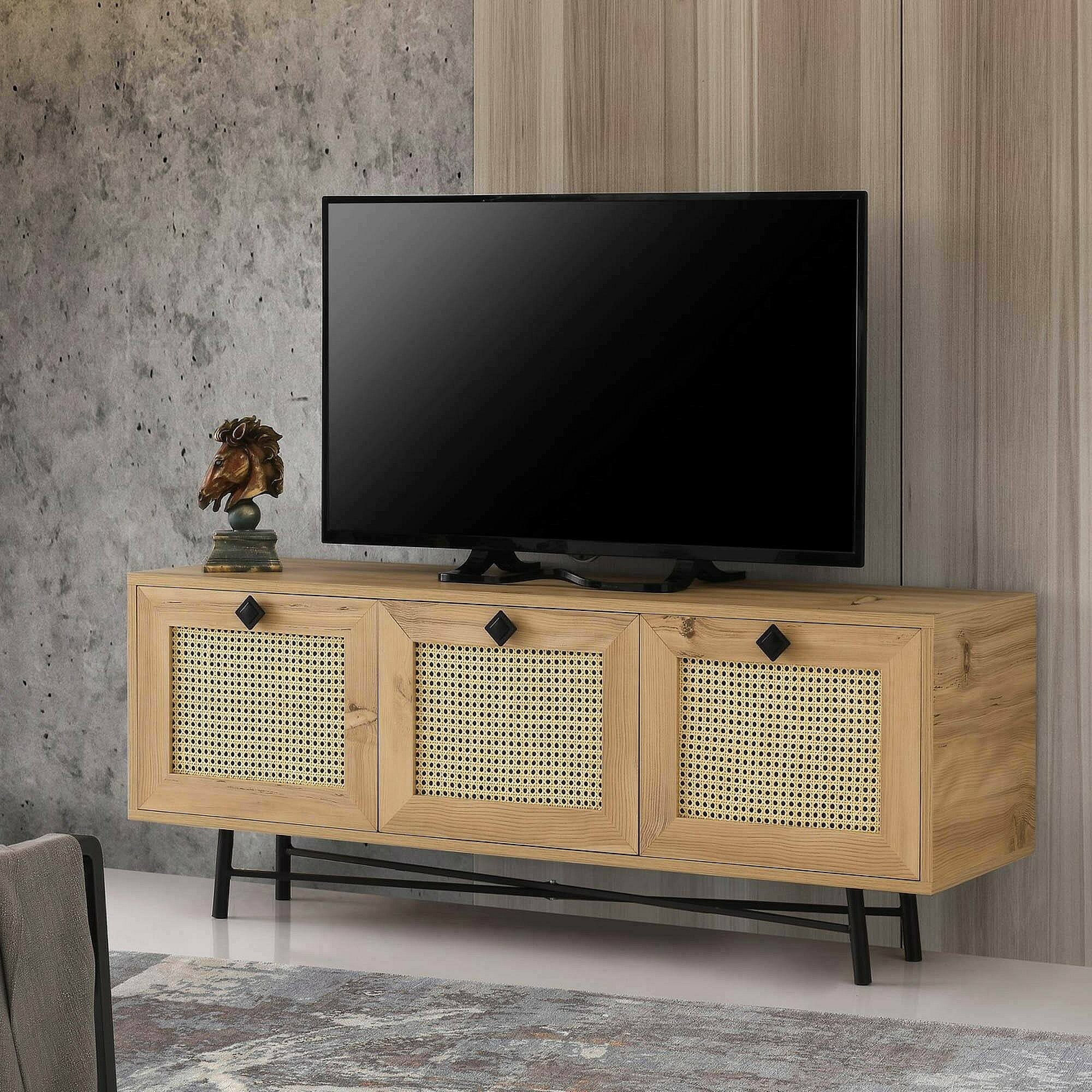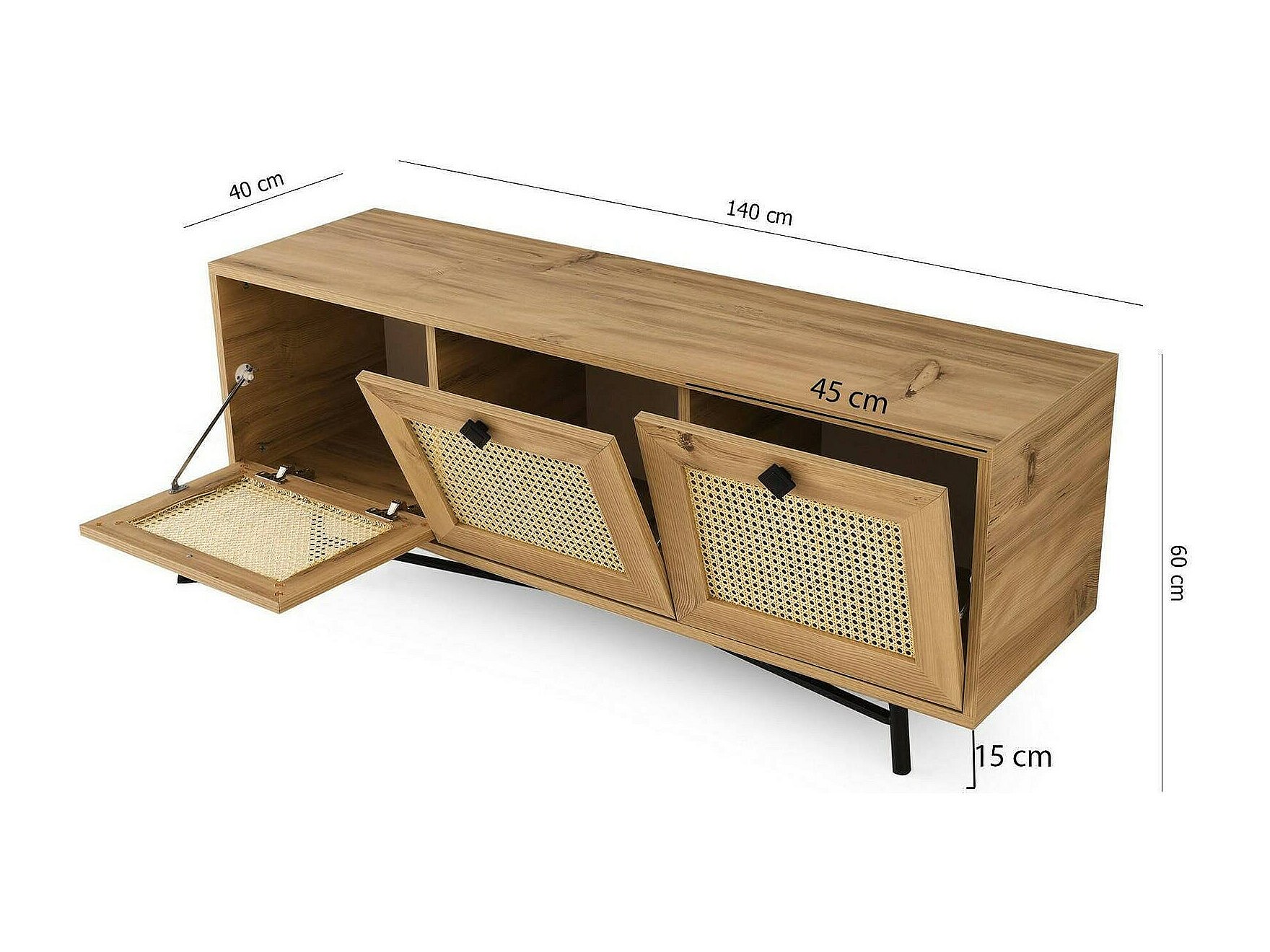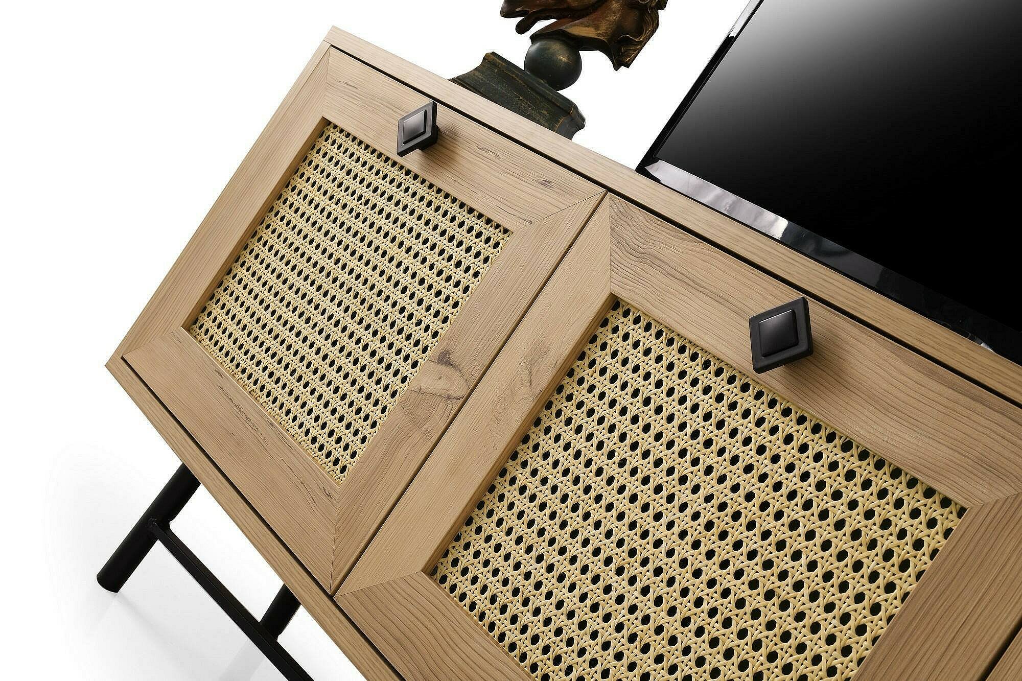 Meuble TV Nihal, Buffet de salon, Armoire basse pour TV, Base murale de rangement, 140x40h60 cm, Chêne et Noir