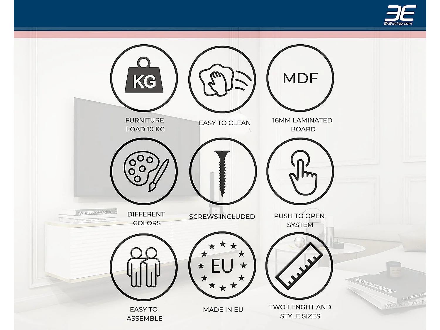 Meuble TV, Noir, 135 x 30 x 32 cm, Push to Open