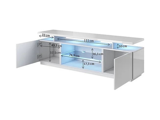 Meuble TV noir brillant 180 cm à LED Zohra - bleu