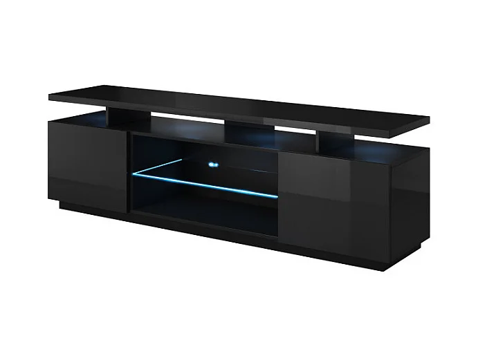 Meuble TV noir brillant 180 cm à LED Zohra - Sans LED