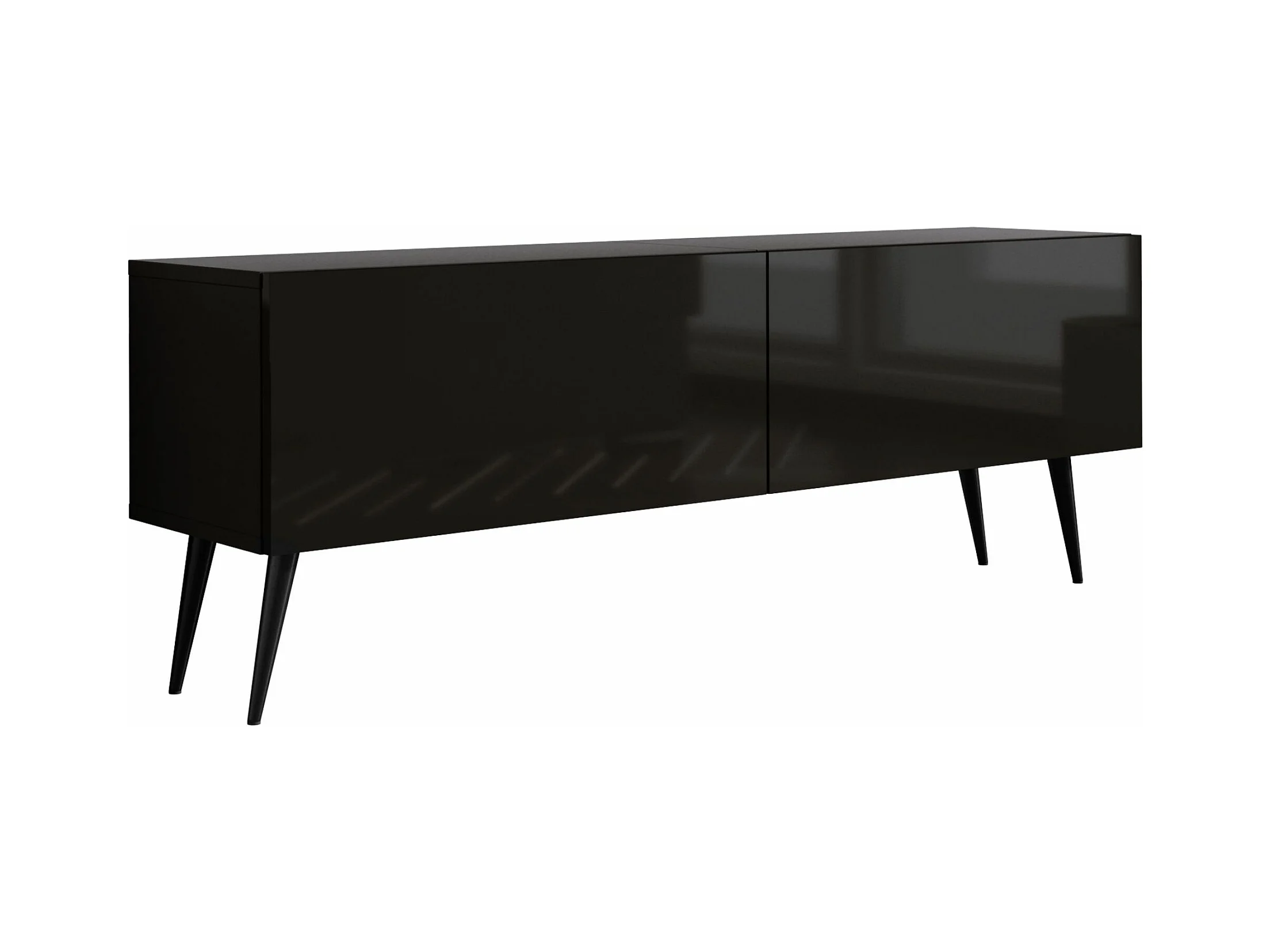 Meuble TV : Noir Mat/ Noir Brillant, pieds noires, 140 x 52 x 32 cm