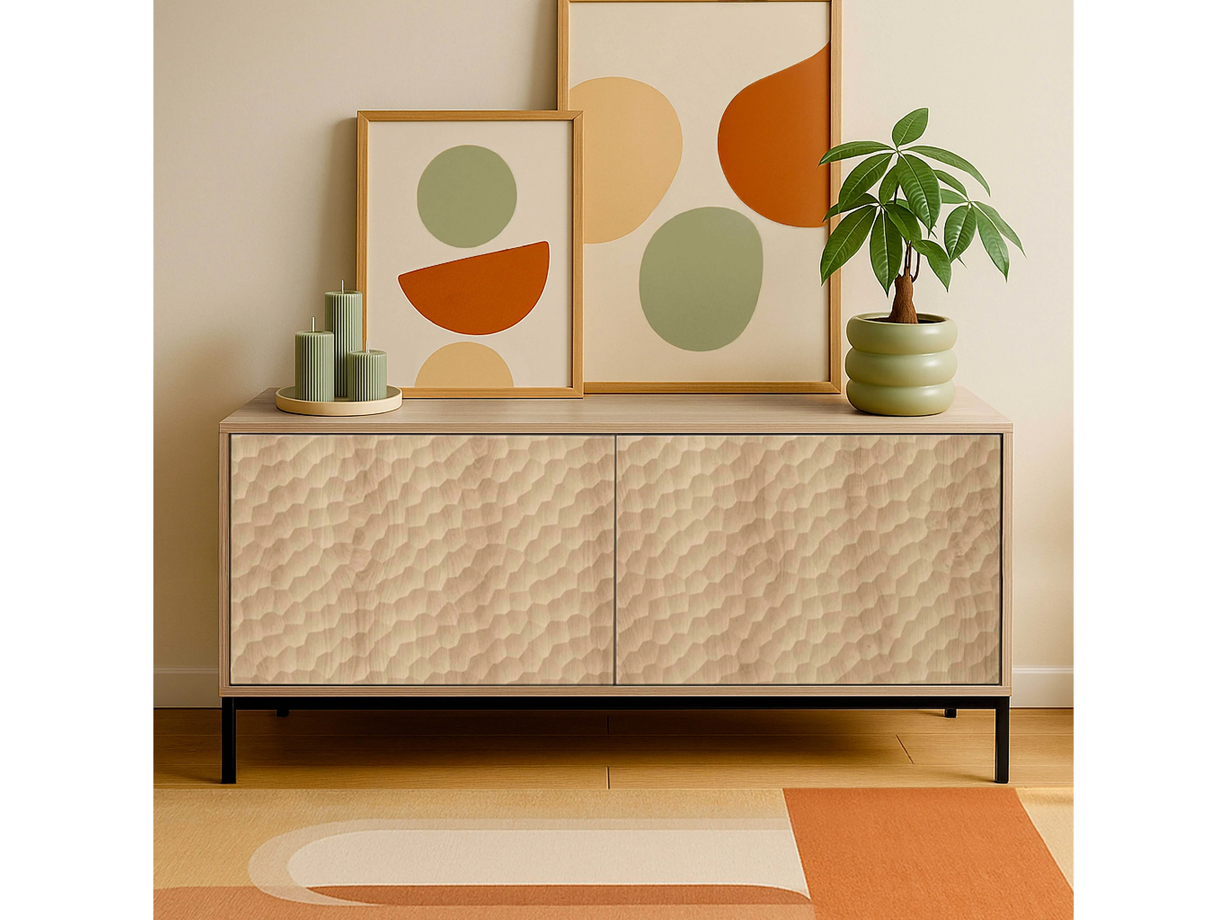 Meuble TV en bois naturel 2 portes 1 tiroir 1 niche - ORIGAMI