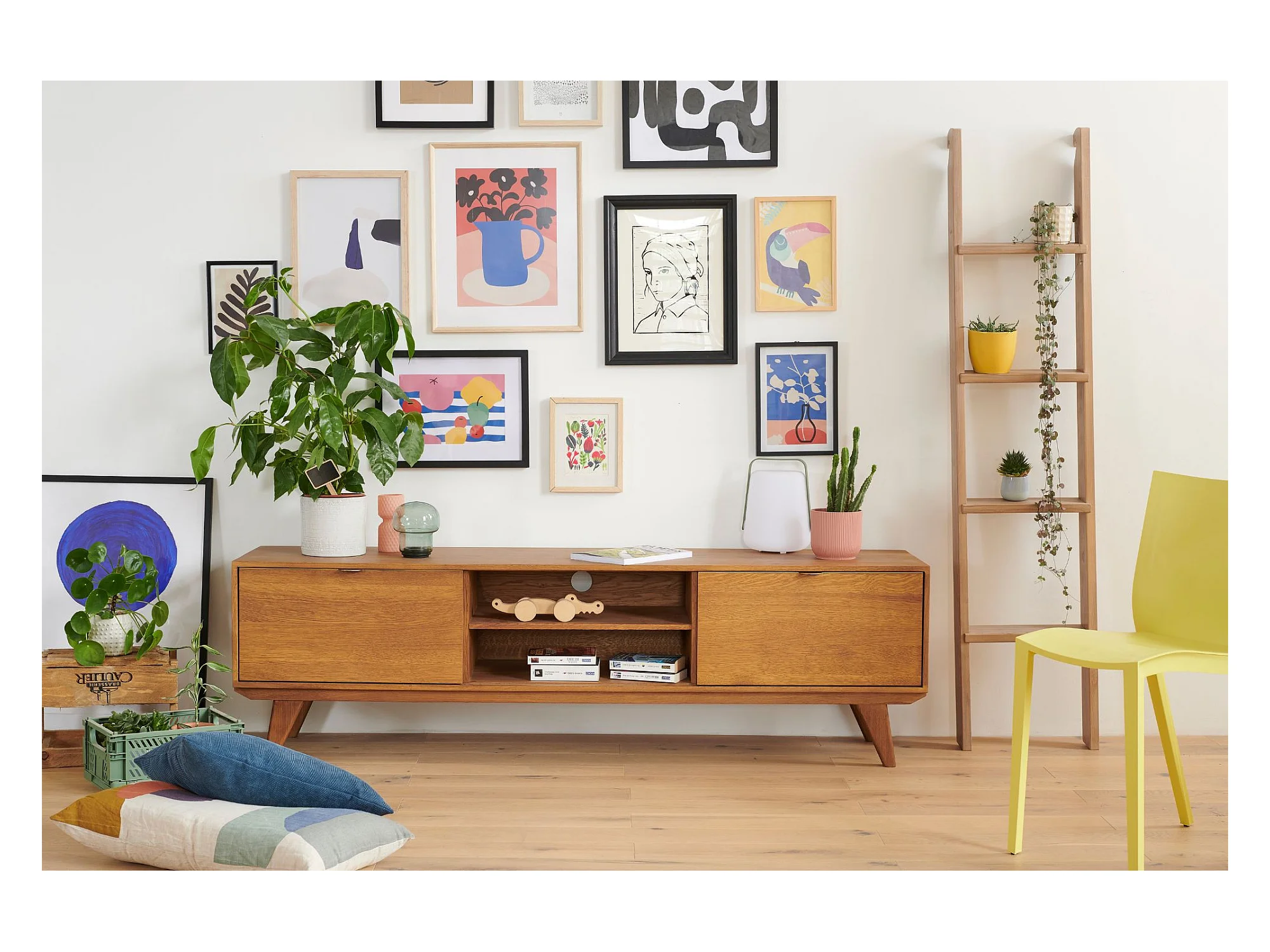 Meuble TV rétro en bois 2 niches 2 portes L180 bronze - MALLET