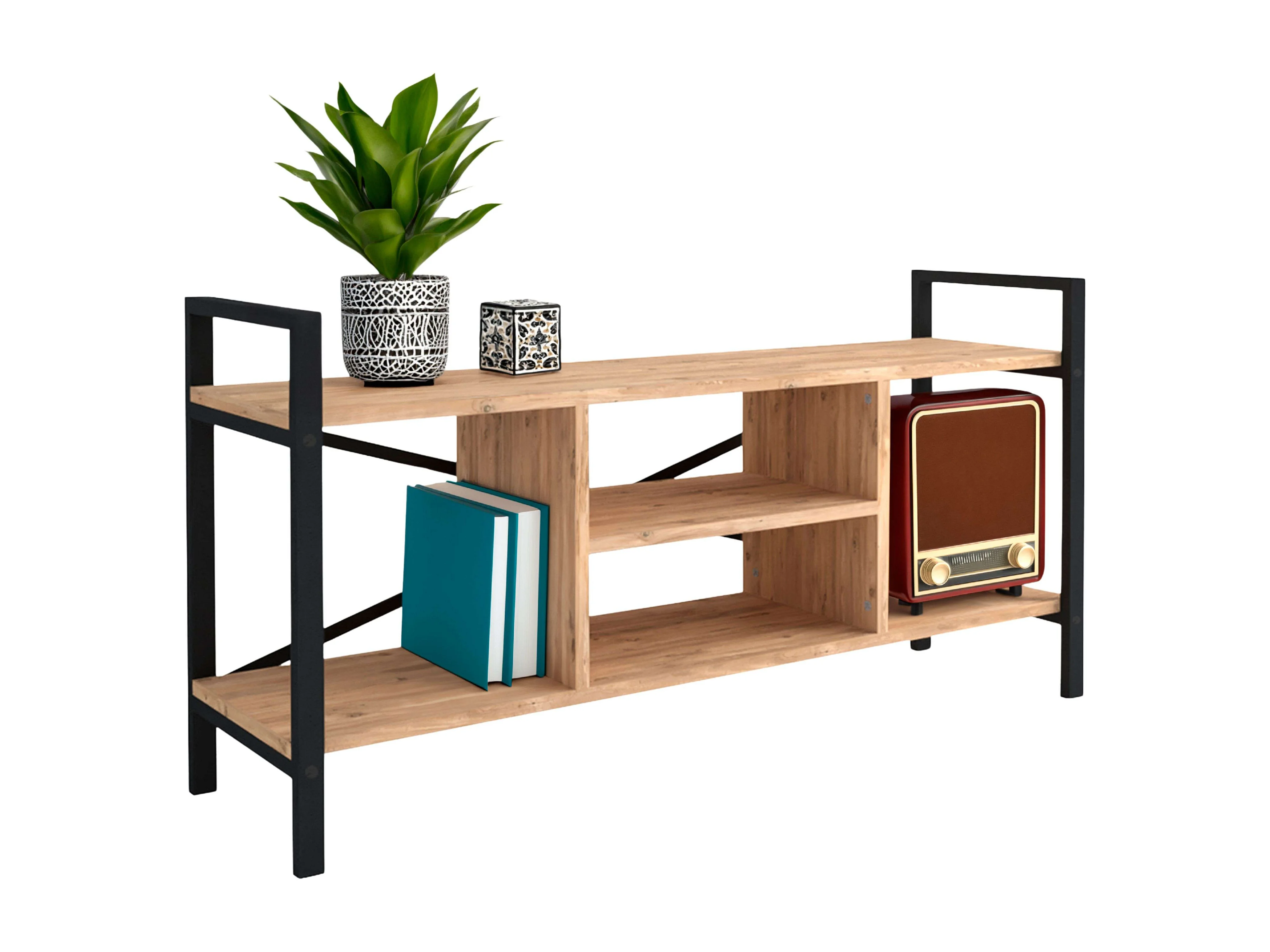 Meuble TV Rus 4 trous Noir/Chêne Safari 120x63x37 cm