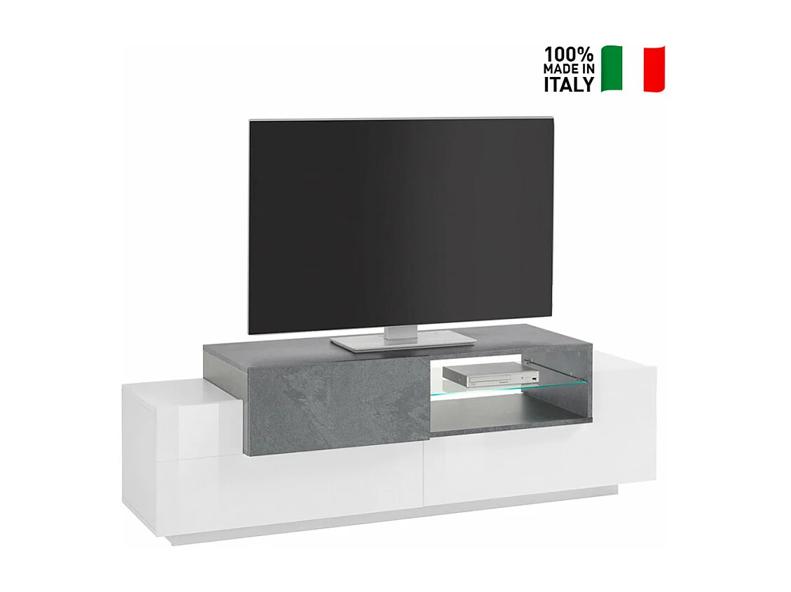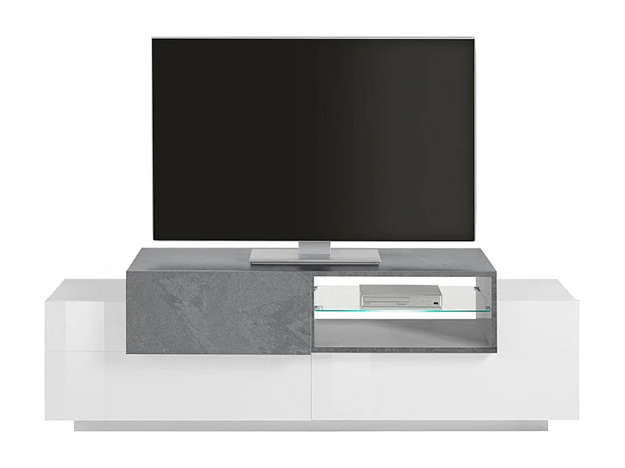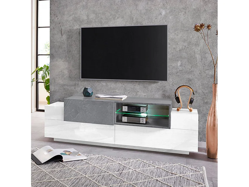 Meuble TV salon armoire tiroir blanc et ardoise Brera