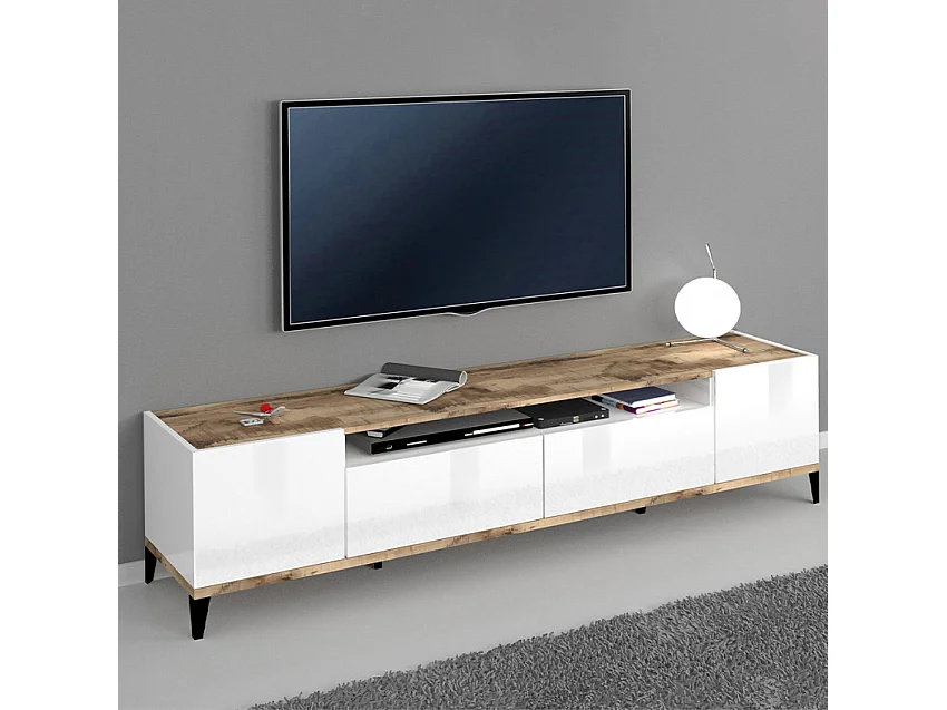 Meuble TV salon moderne armoire tiroir blanc brillant Polar