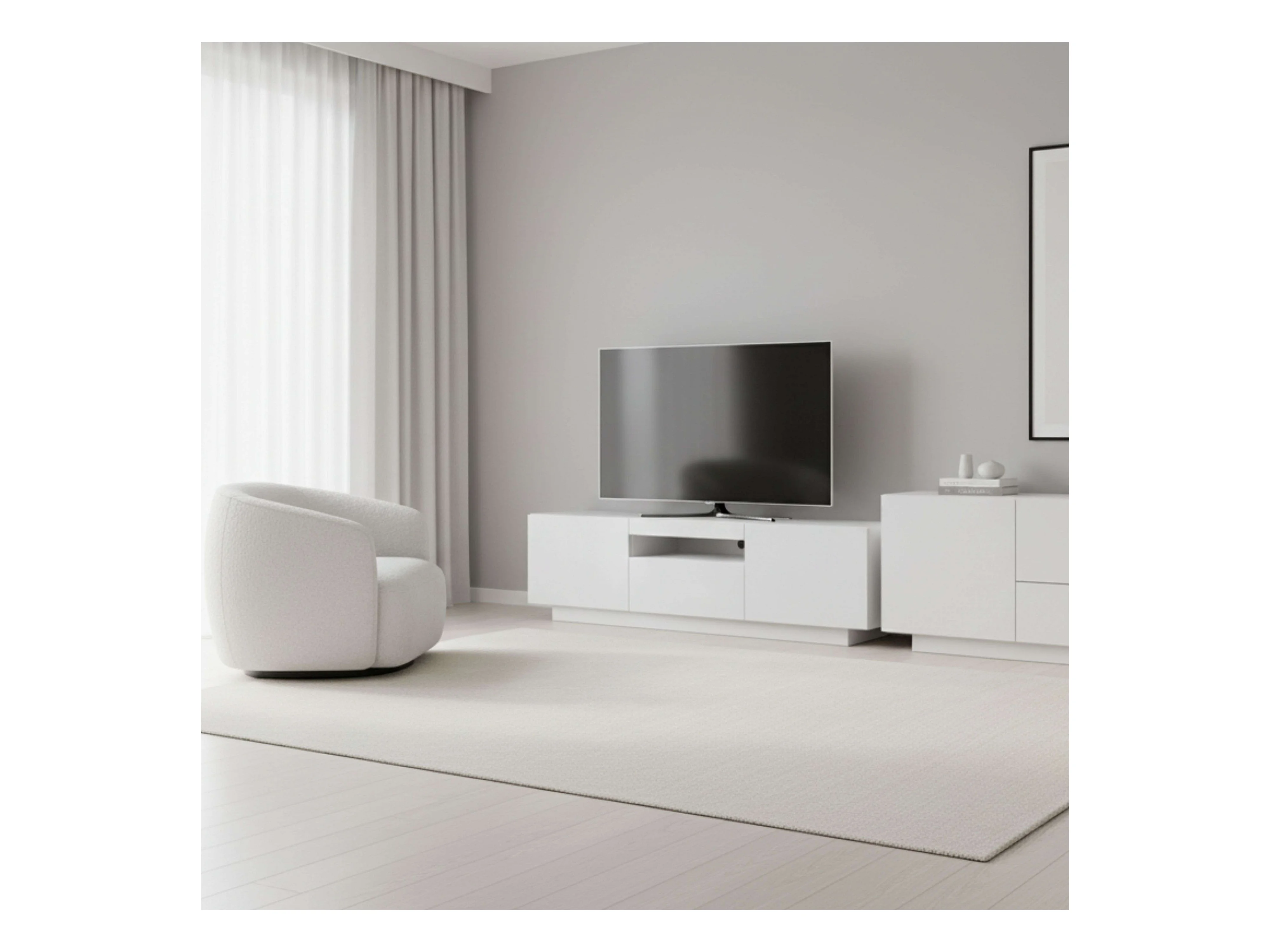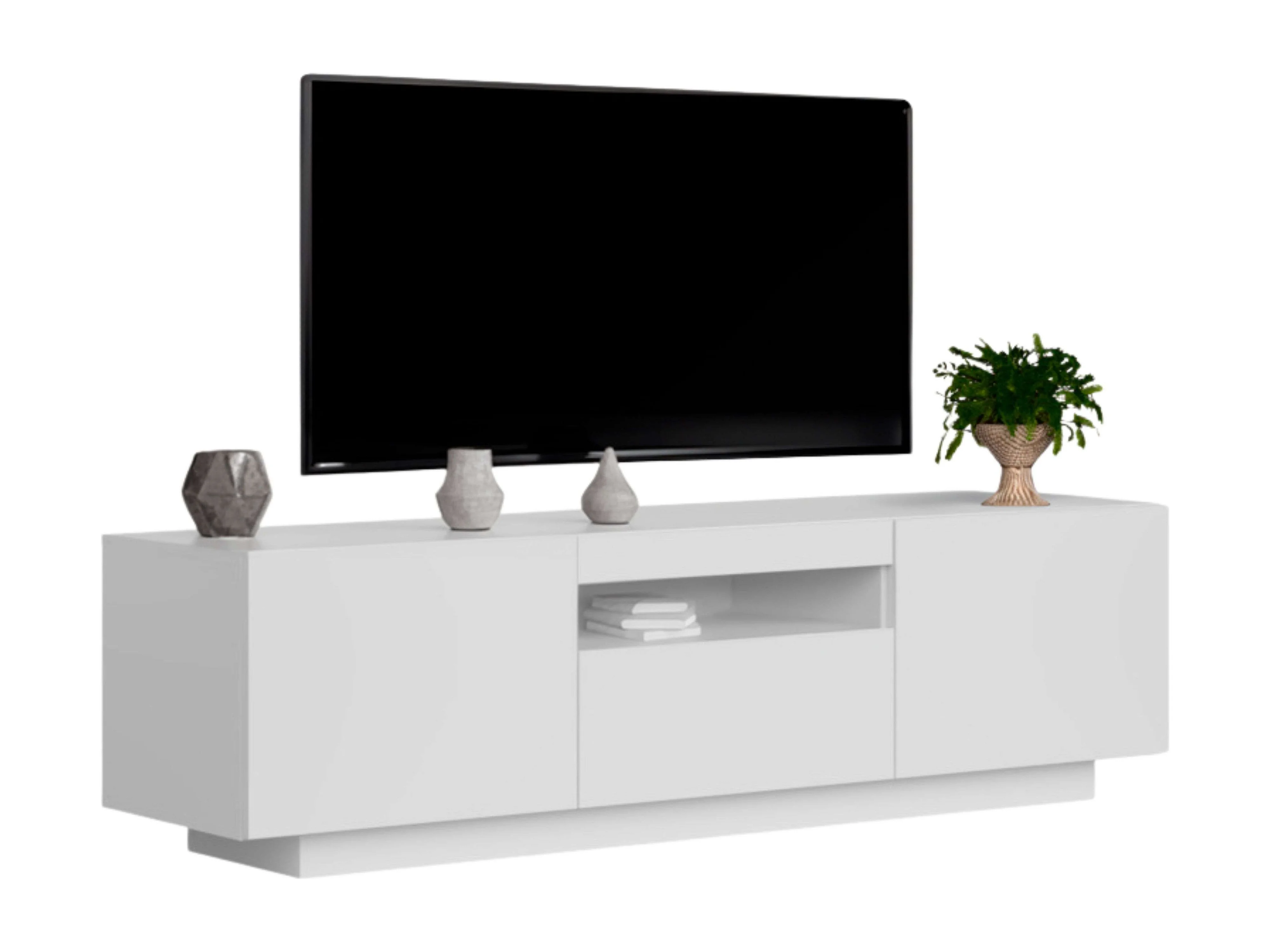 Meuble TV Sami pour salon, 1 tiroir, 2 portes, blanc creux, 150 x 42 x 37 cm