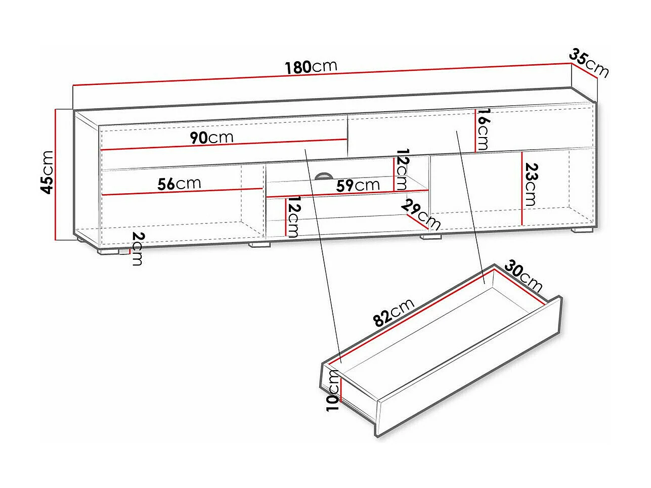Meuble TV Sarasota 134, Blanc|Blanc brillant, Le nombre de portes: 2, 180x45x35cm
