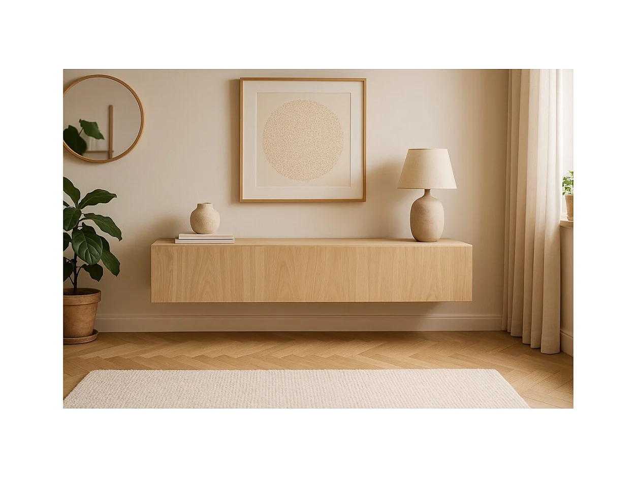 Meuble TV suspendu FLY 160 cm - Coloris chêne clair