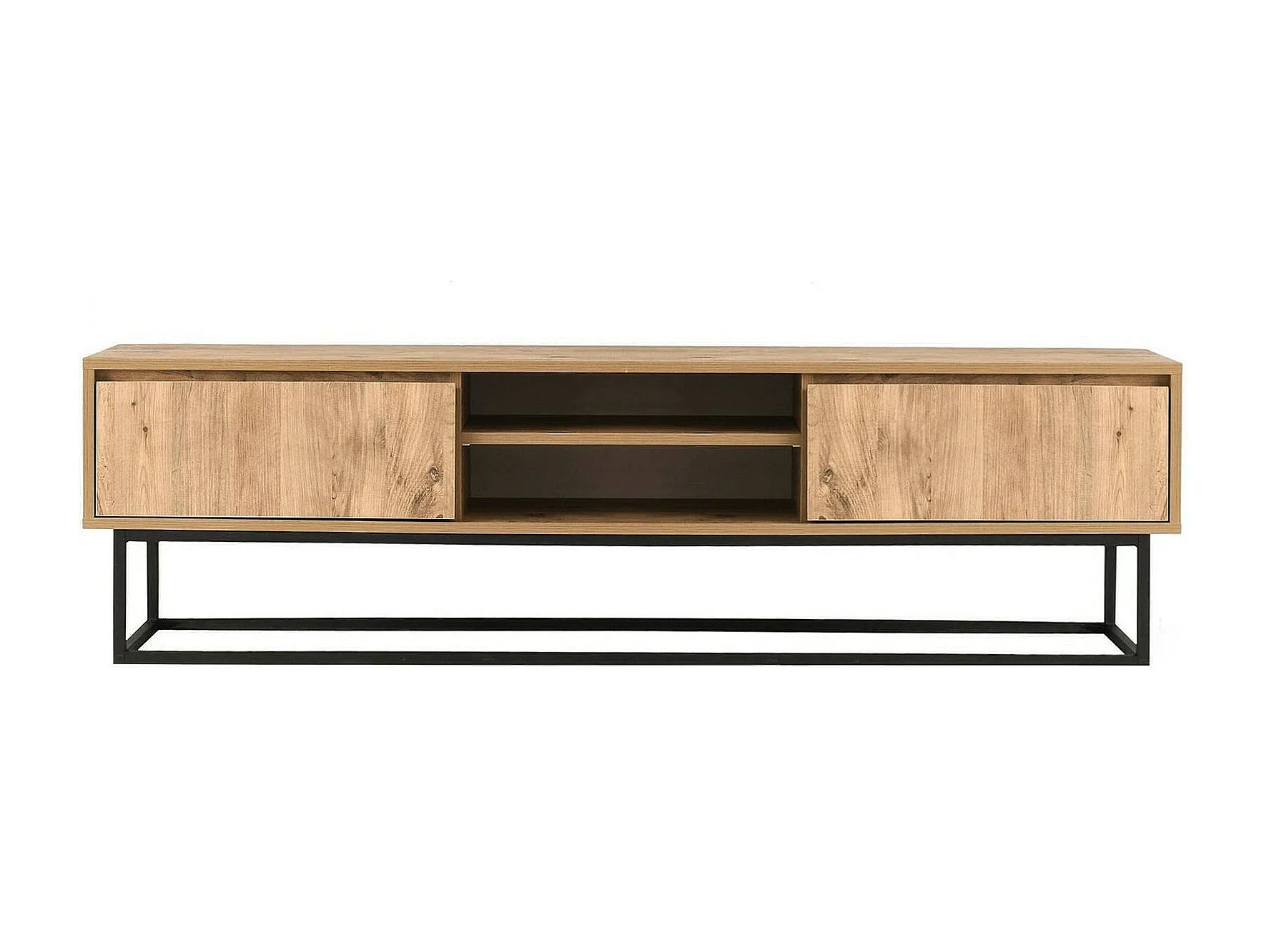 Meuble TV Themis, Buffet de salon, Armoire basse pour TV, Base murale de rangement, 140x40h50 cm, Noir et Chêne