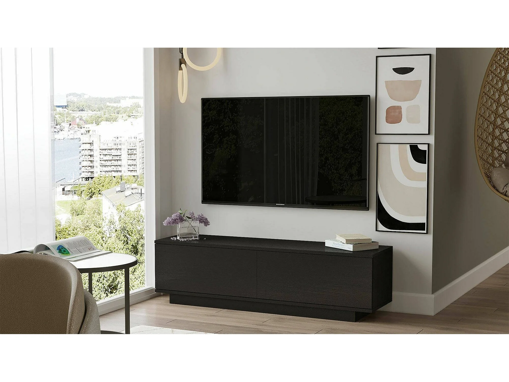 Meuble TV Zaur, Buffet de salon, Armoire basse pour TV, Base murale de rangement, 140x36h38 cm, Noir