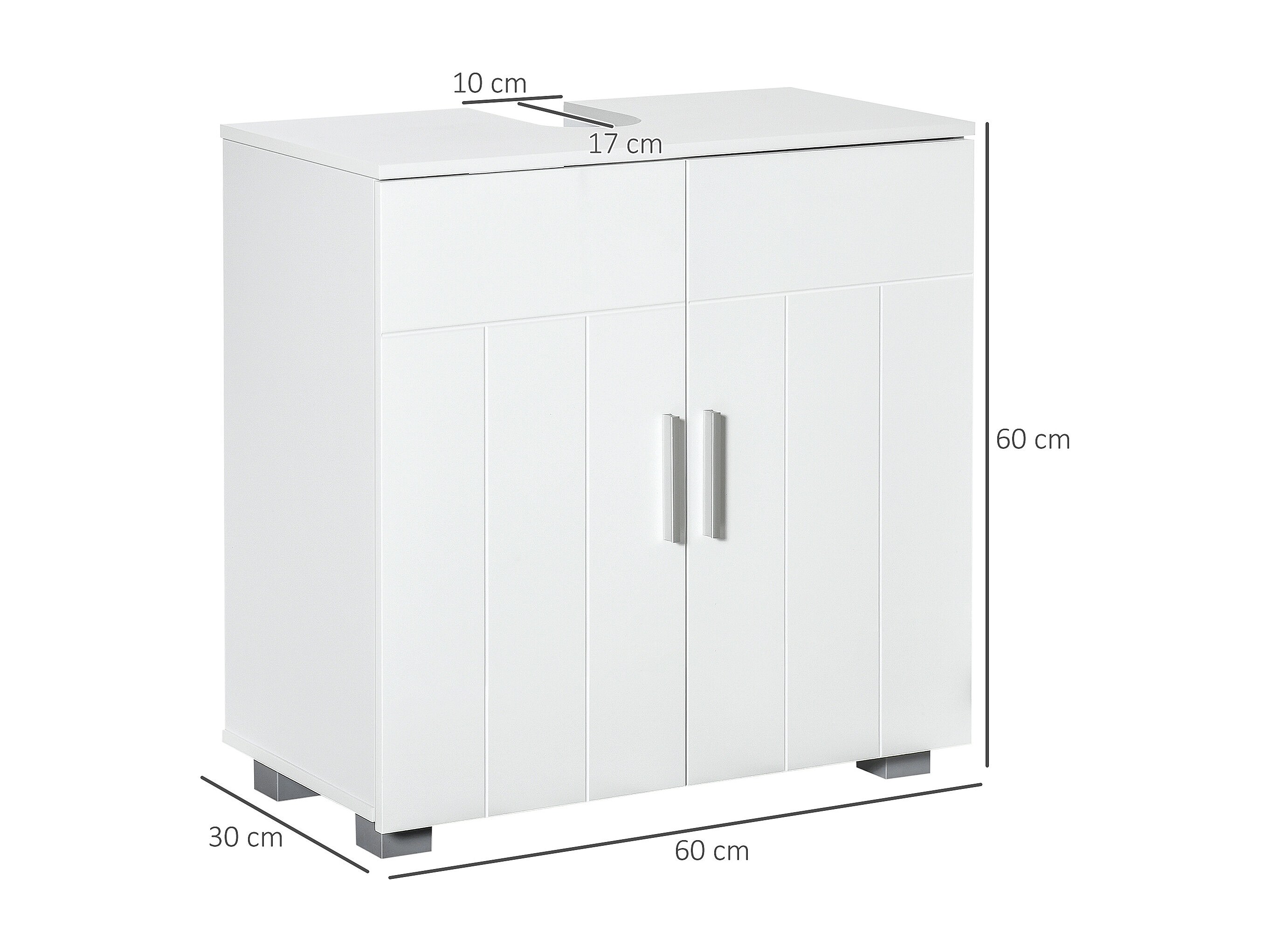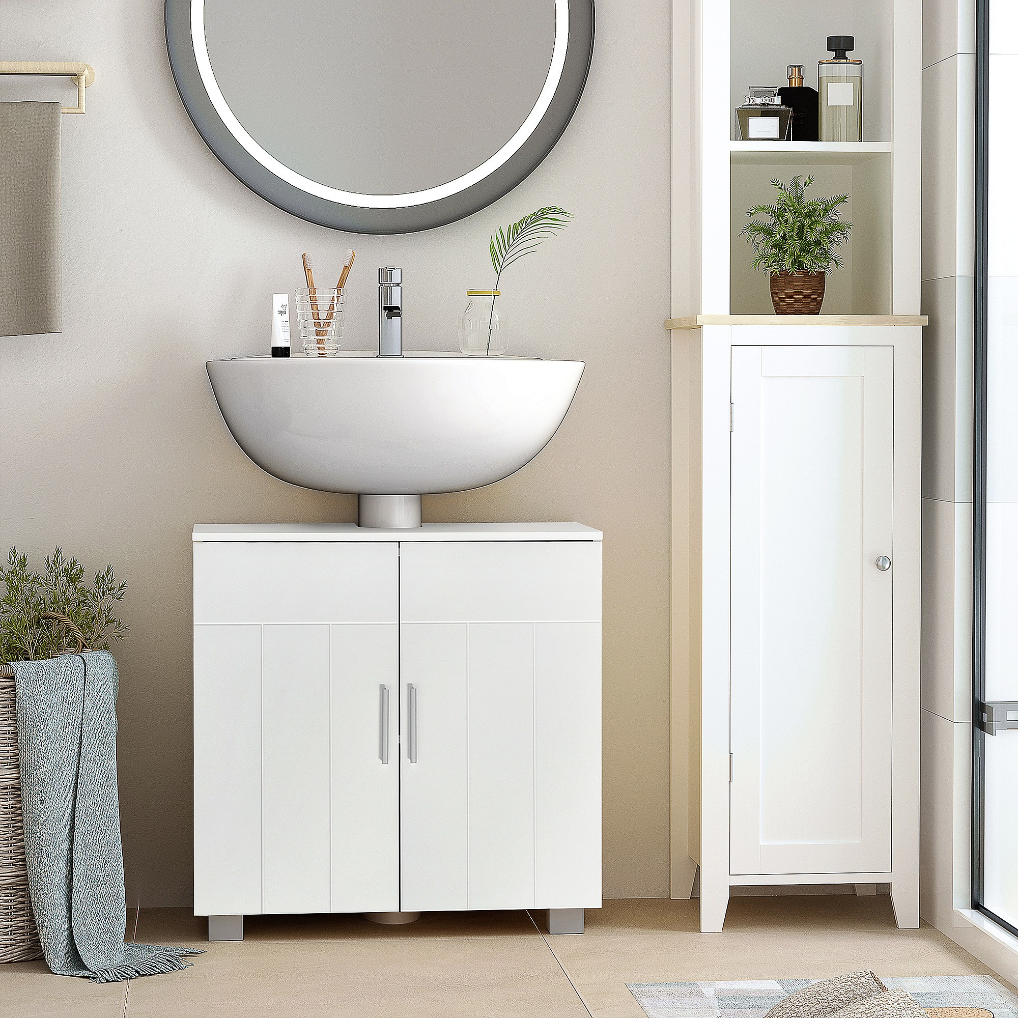 Meuble Sous-Lavabo Meuble de Salle de Bain Vasque - 2 portes et 2 étages -Blanc, FRG237-W