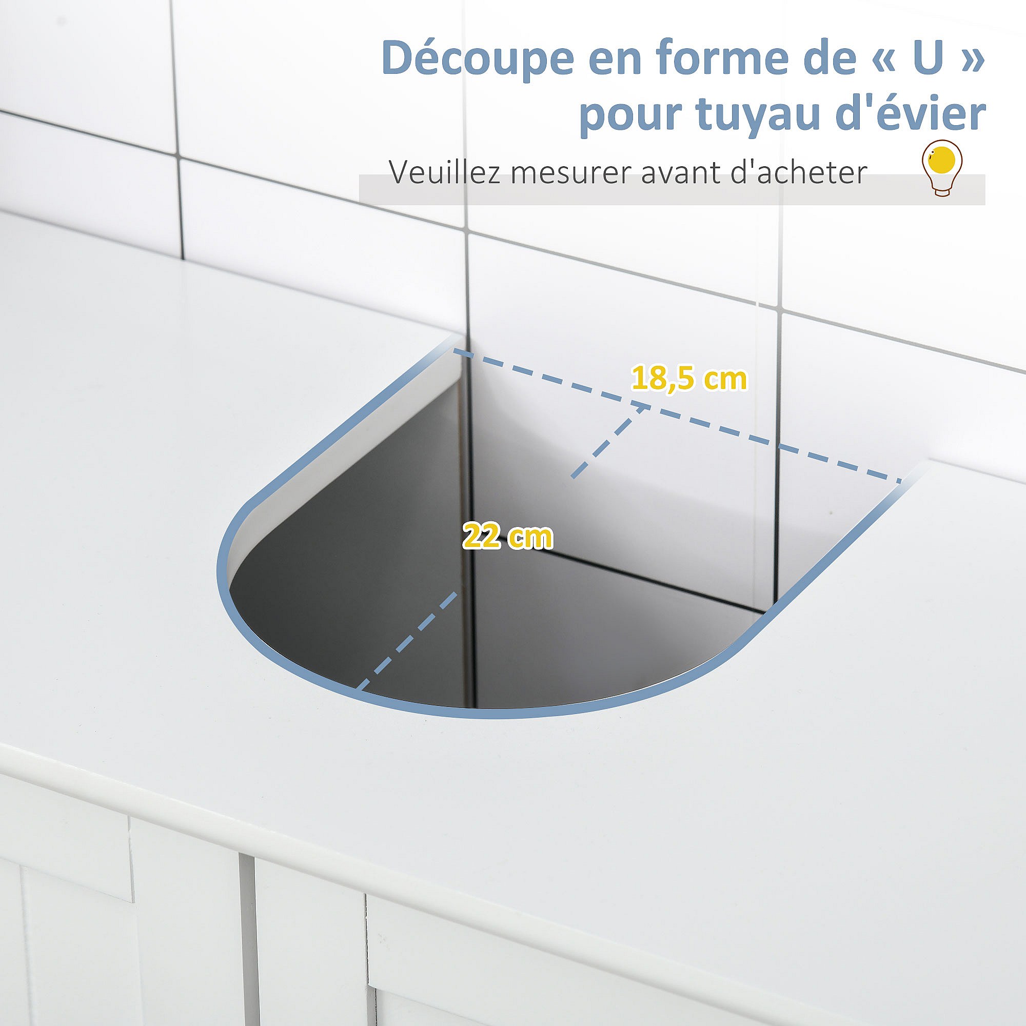 Meuble vasque - meuble sous-vasque - 2 portes rainurées avec étagère réglable - poignées métal chromé - dim. 60L x 30l x 60H cm - MDF blanc