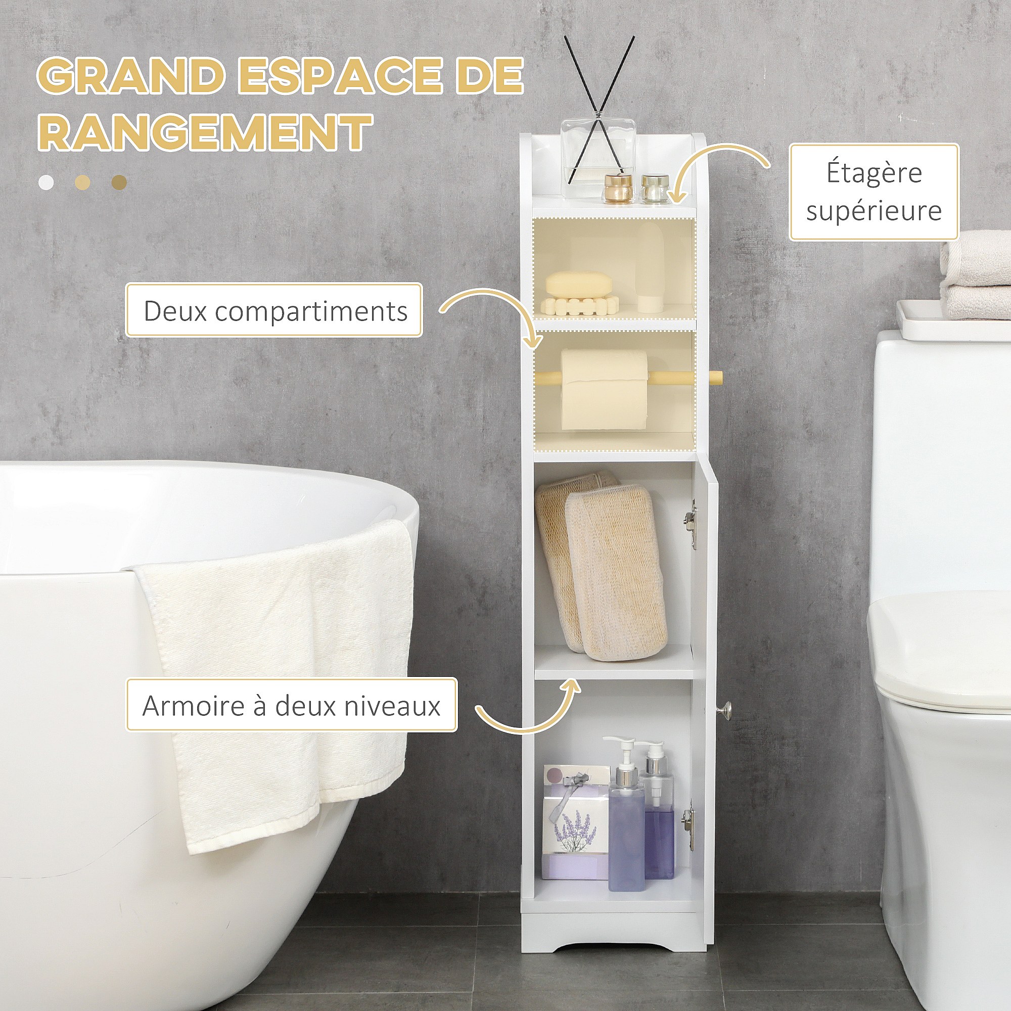 Meuble WC armoire toilette - porte, 2 étagères, niche, support papier - dim. 23L x 18l x 100H cm - blanc