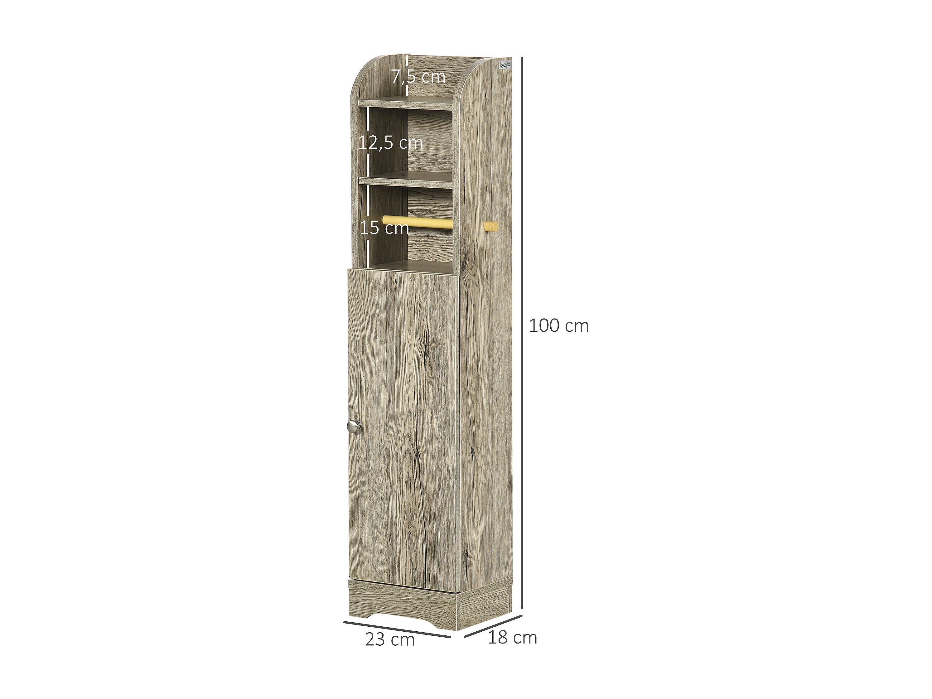 Meuble WC armoire toilette - porte, 2 étagères, niche, support papier - dim. 23L x 18l x 100H cm - gris