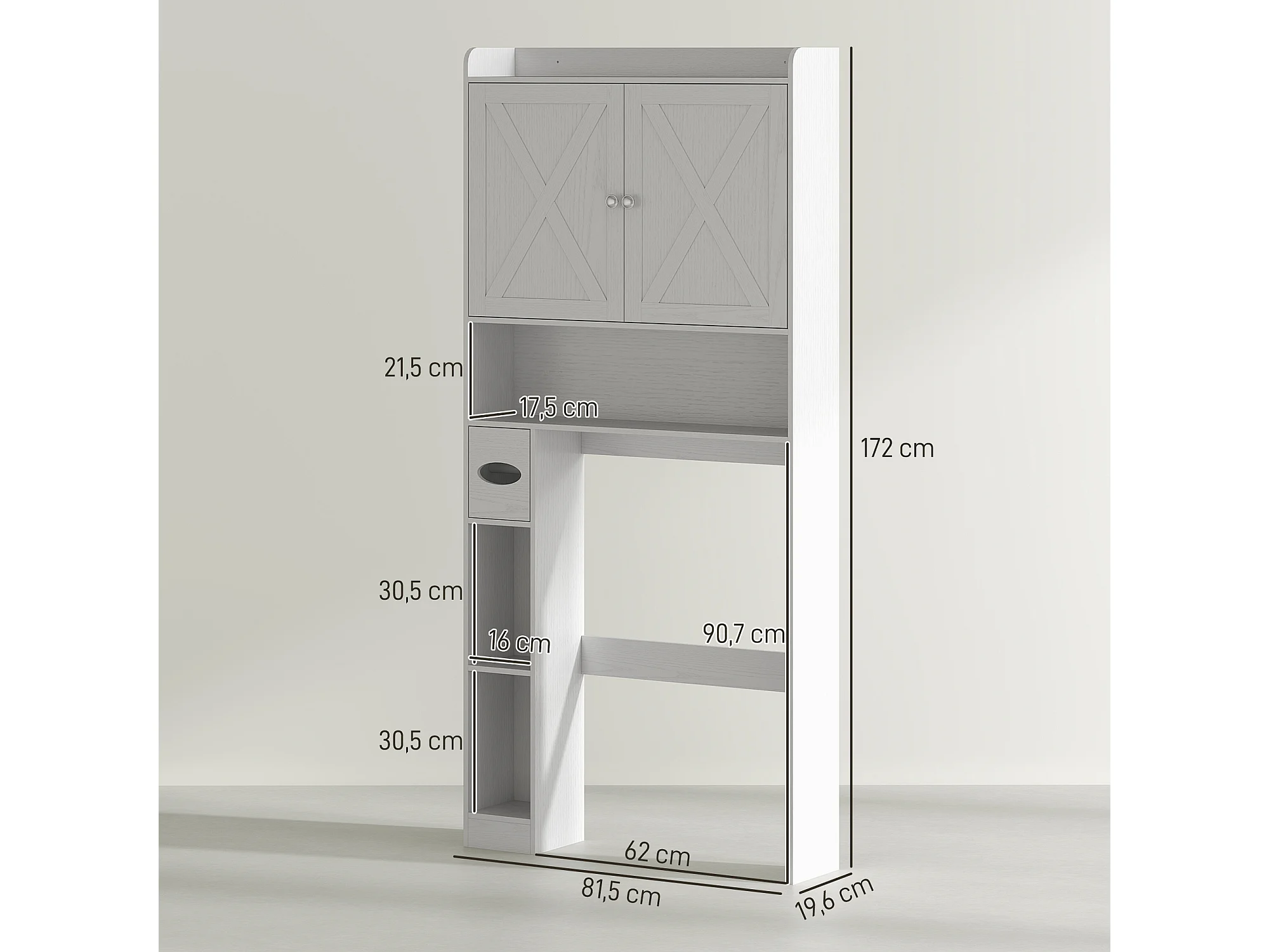 Meuble WC meuble dessus toilettes 2 portes étagère 3 niches porte-papier blanc