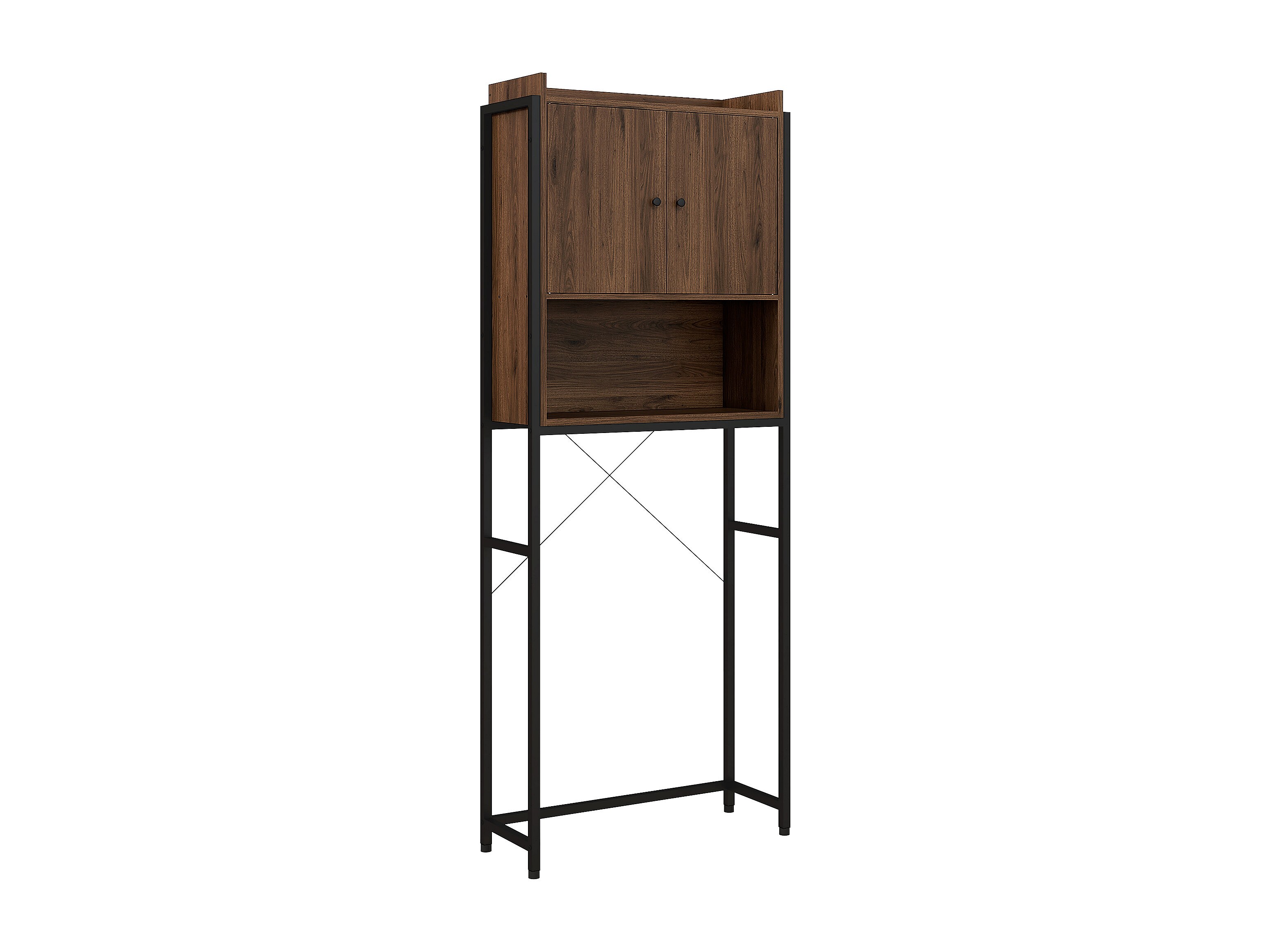 Meuble WC meuble dessus toilettes style industriel 2 portes avec étagère niche acier noir aspect noyer