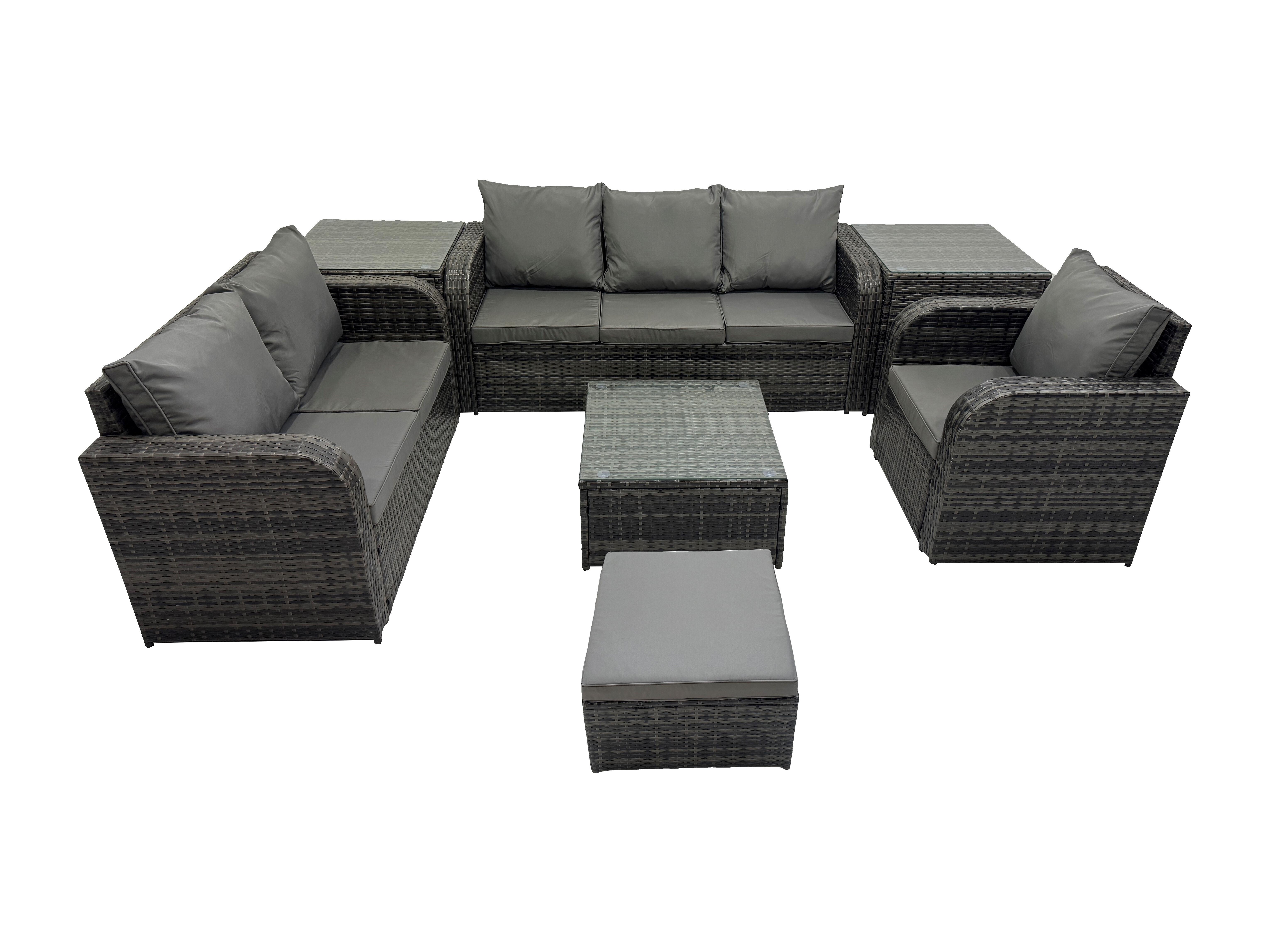 Meubles de jardin en rotin 7 Pièces avec Table basse carrée Chaise inclinable Canapé à deux places 2 Tables d'appoint Grand tabouret