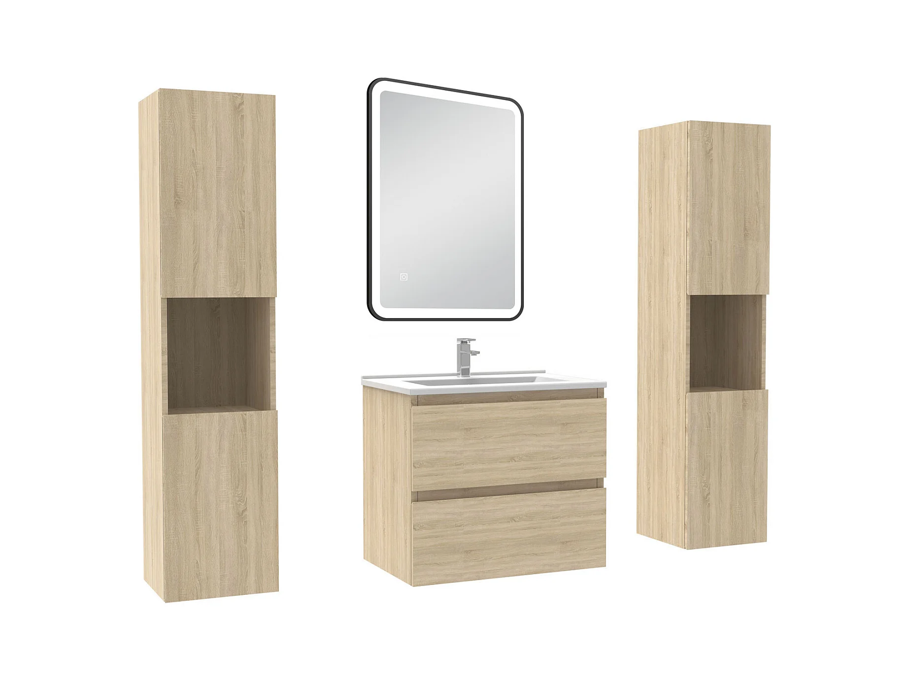 Meubles Salle de Bain 60cm avec colonne + miroir lumineux 3 couleurs + dimmable Chêne Wotan