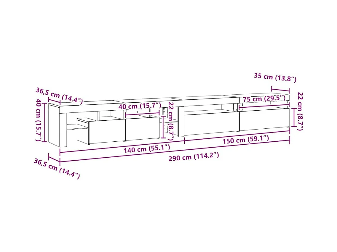 Meubles TV 2 pcs Chêne noir 290 x 36.5 x 40 cm