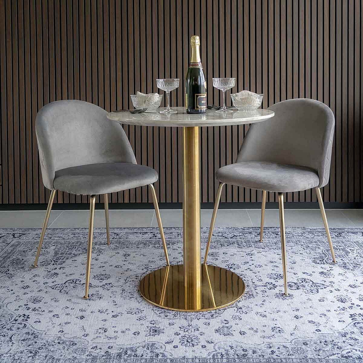Lot de 2 Chaises Velours Gris et Pieds Métal Doré - MEYRIN