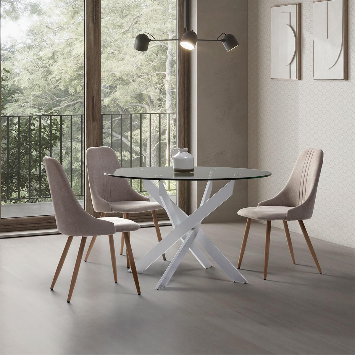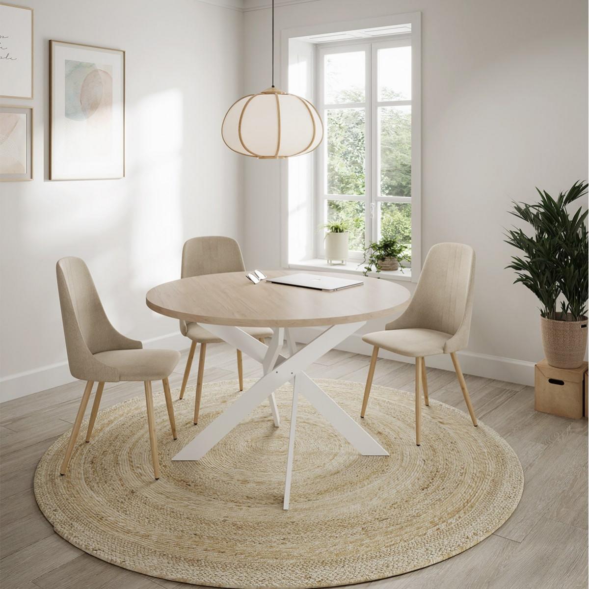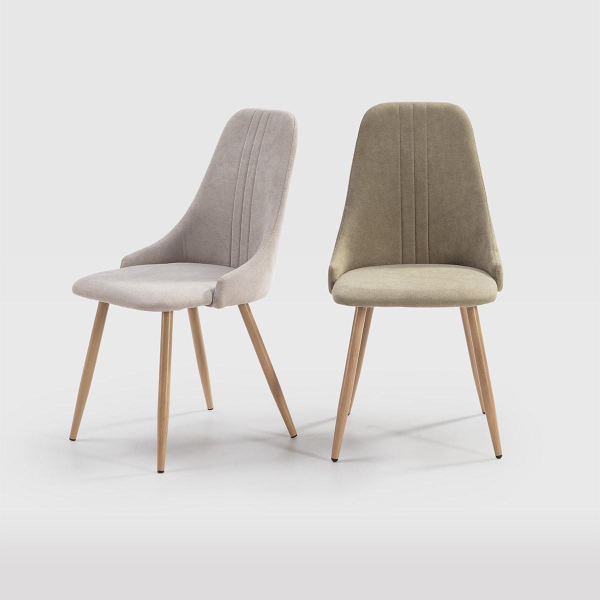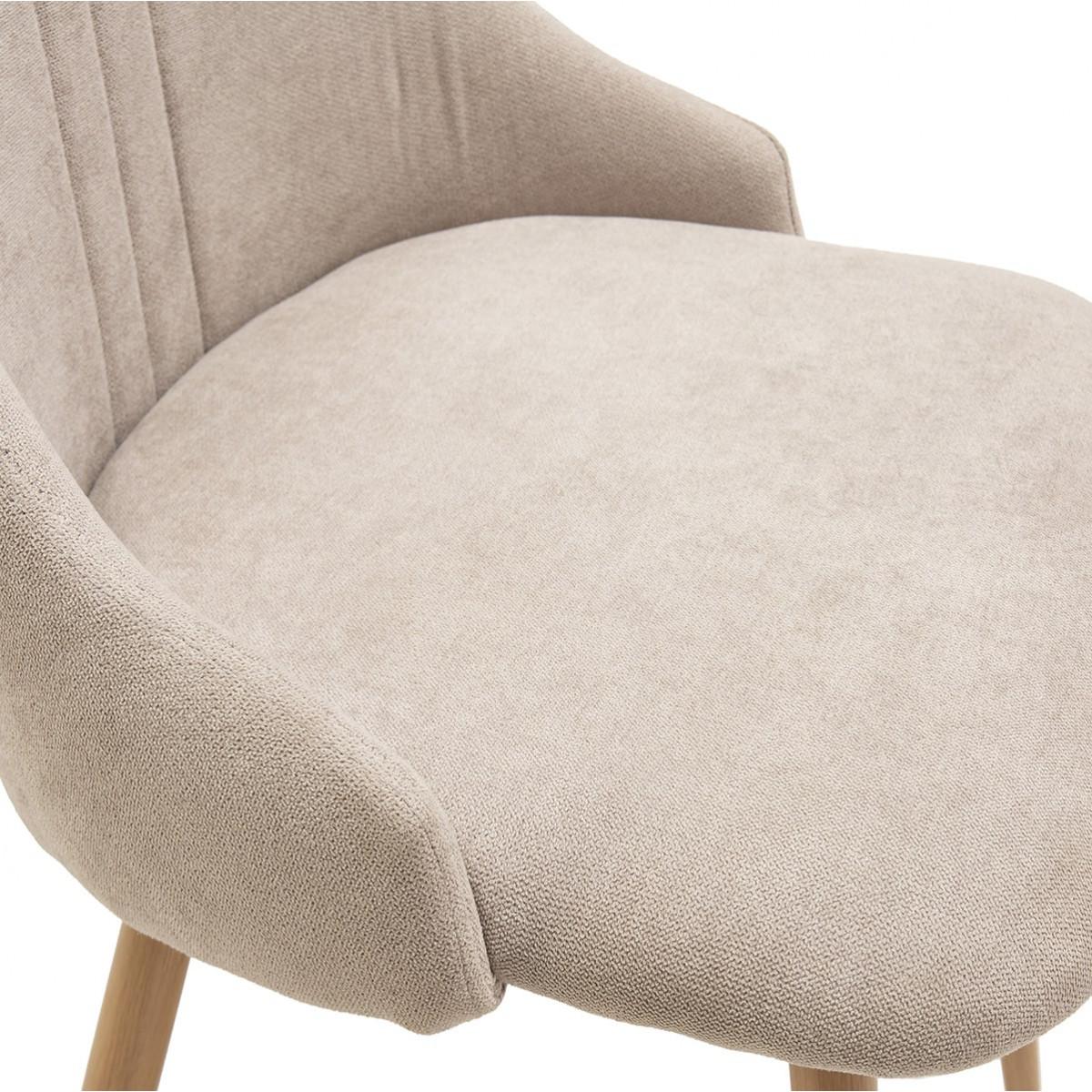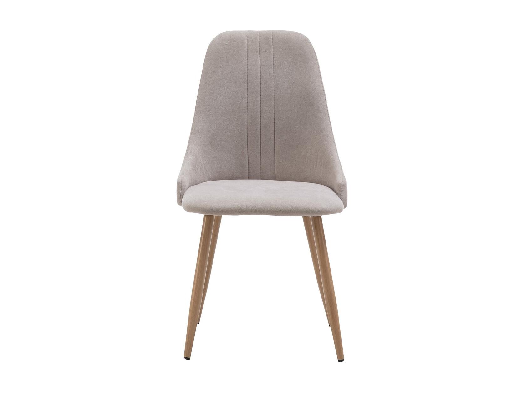 MICAT - Lot de 4 Chaises Tissu Beige 3 Lignes Surpiquées Pieds Métal Effet Bois