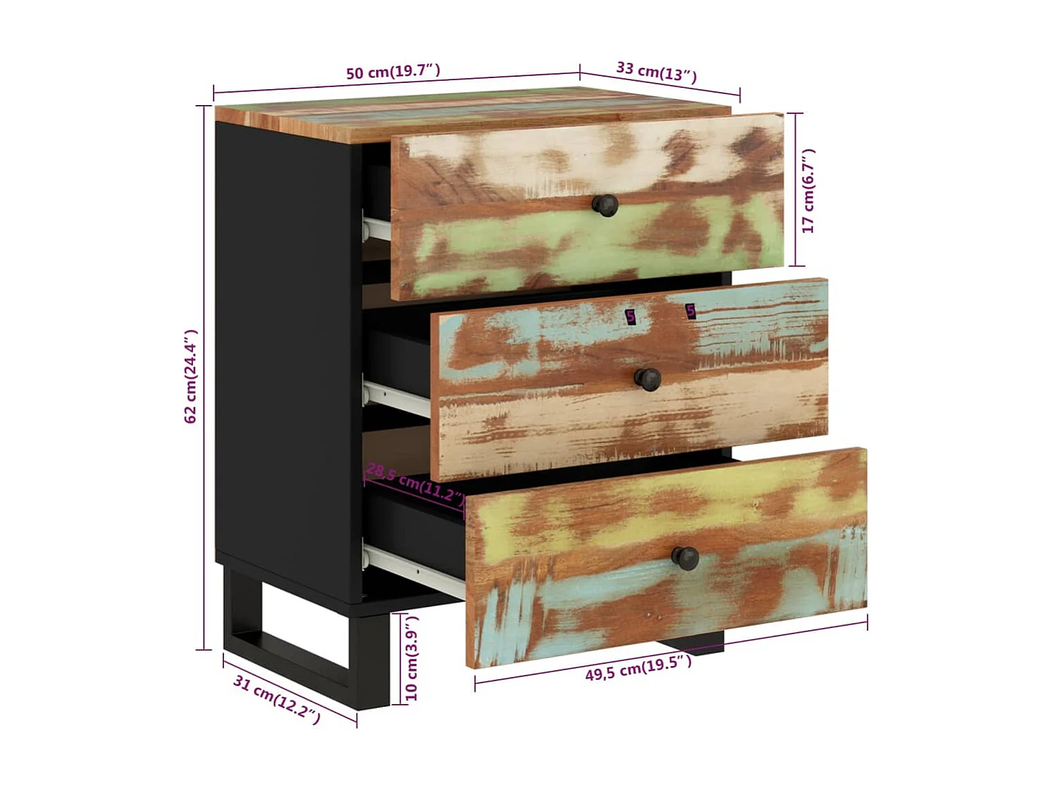 Mie Table de chevet 50x33x62cm Bois de récupération et d'ingénierie