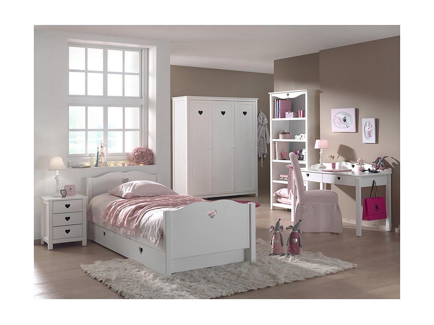 MILADY - Chambre 90x200cm avec Sommier + Armoire 3P + Pack Bureau